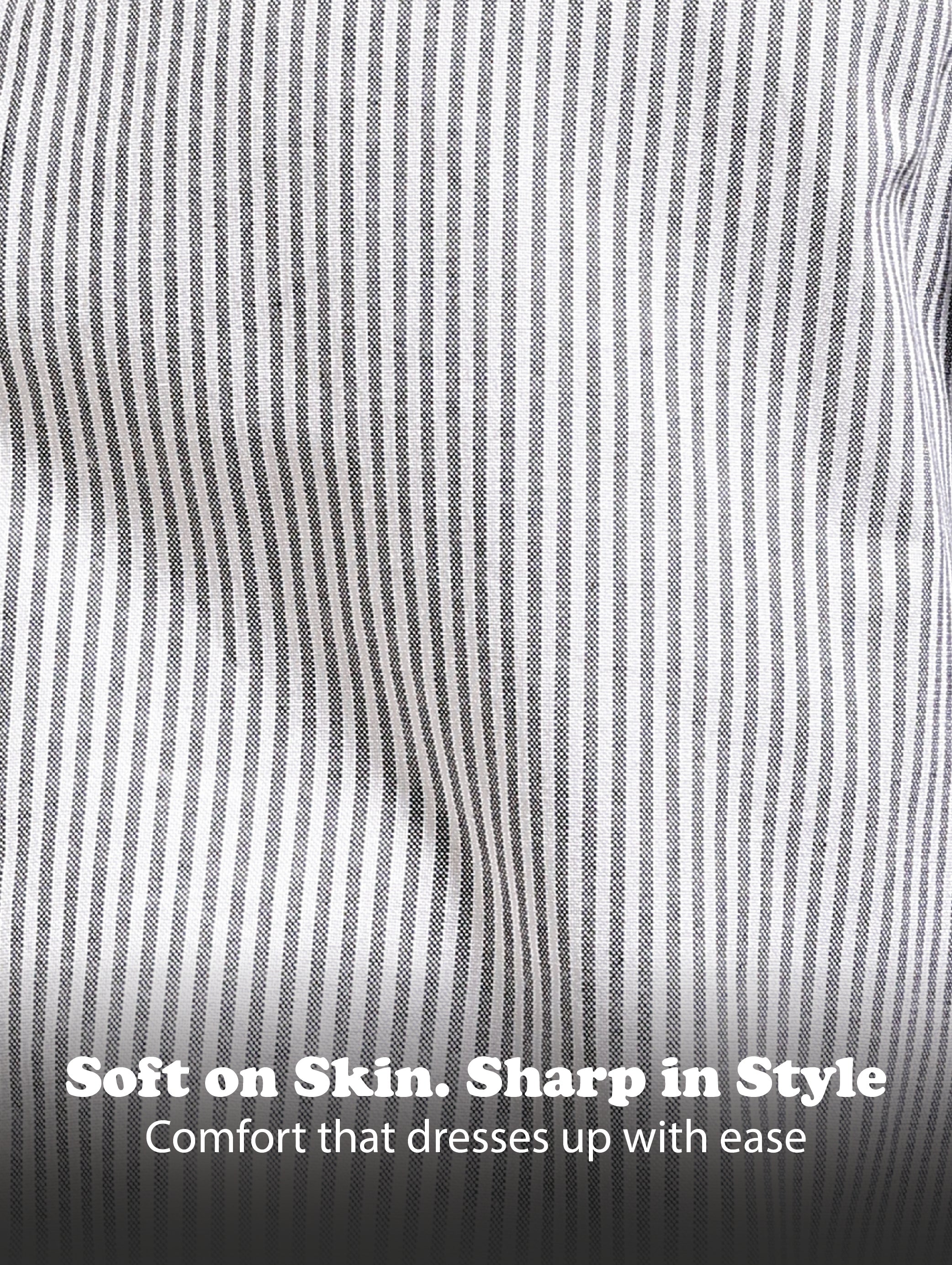 100% Cotton Oxford Slim Fit Striped Shirt Black