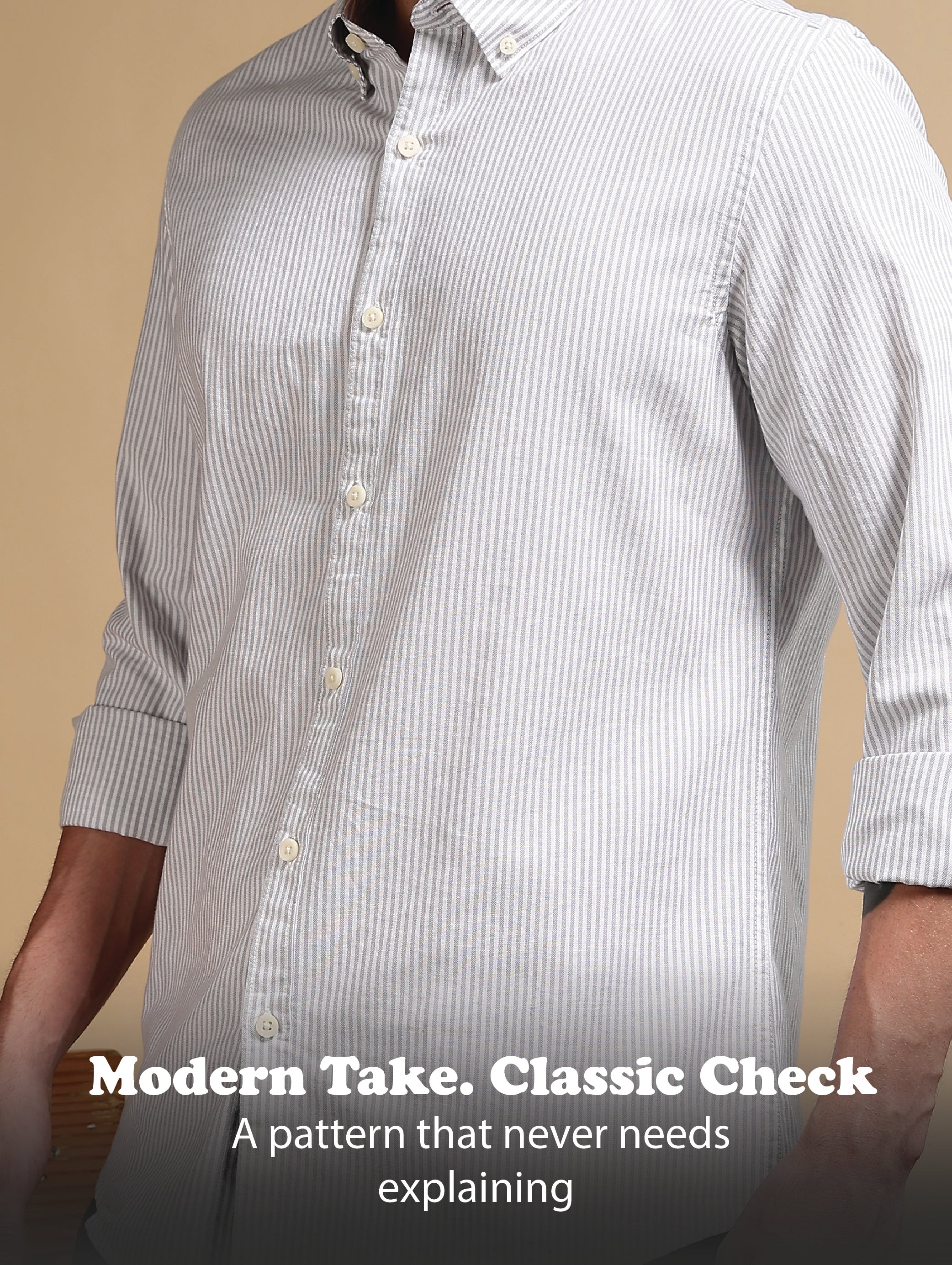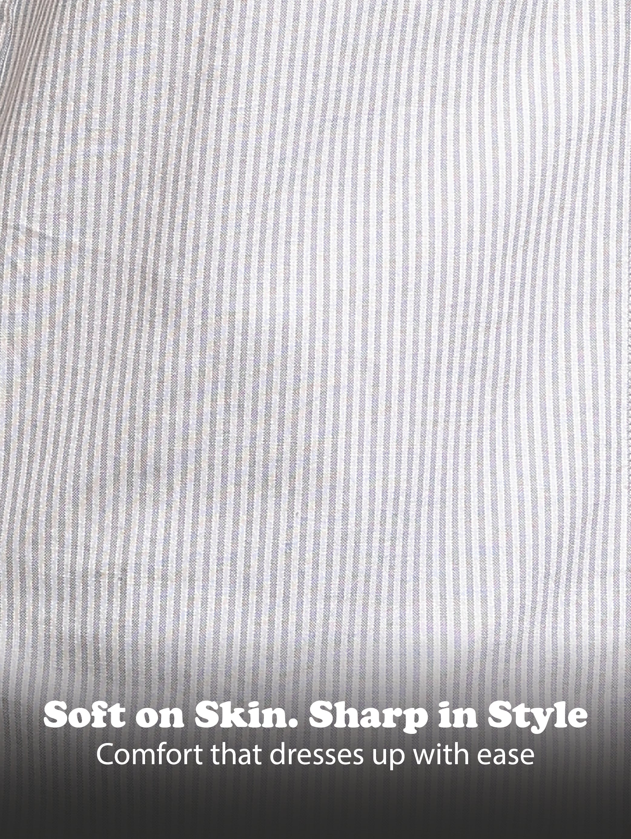 100% Cotton Oxford Slim Fit Striped Shirt Grey