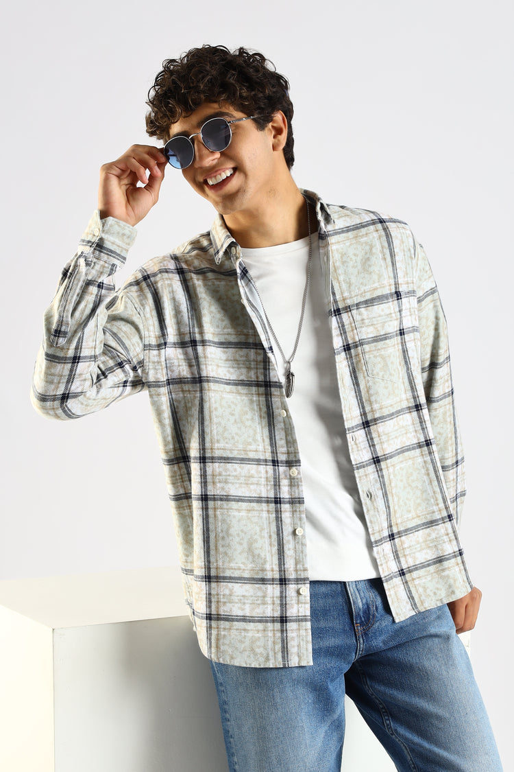 Add a touch of rugged charm to your casual wardrobe with this beige and blue checked shirt, crafted from 100% cotton for a breathable, soft feel. The slim-fit cut offers a sharp silhouette, while the classic check pattern brings timeless appeal.