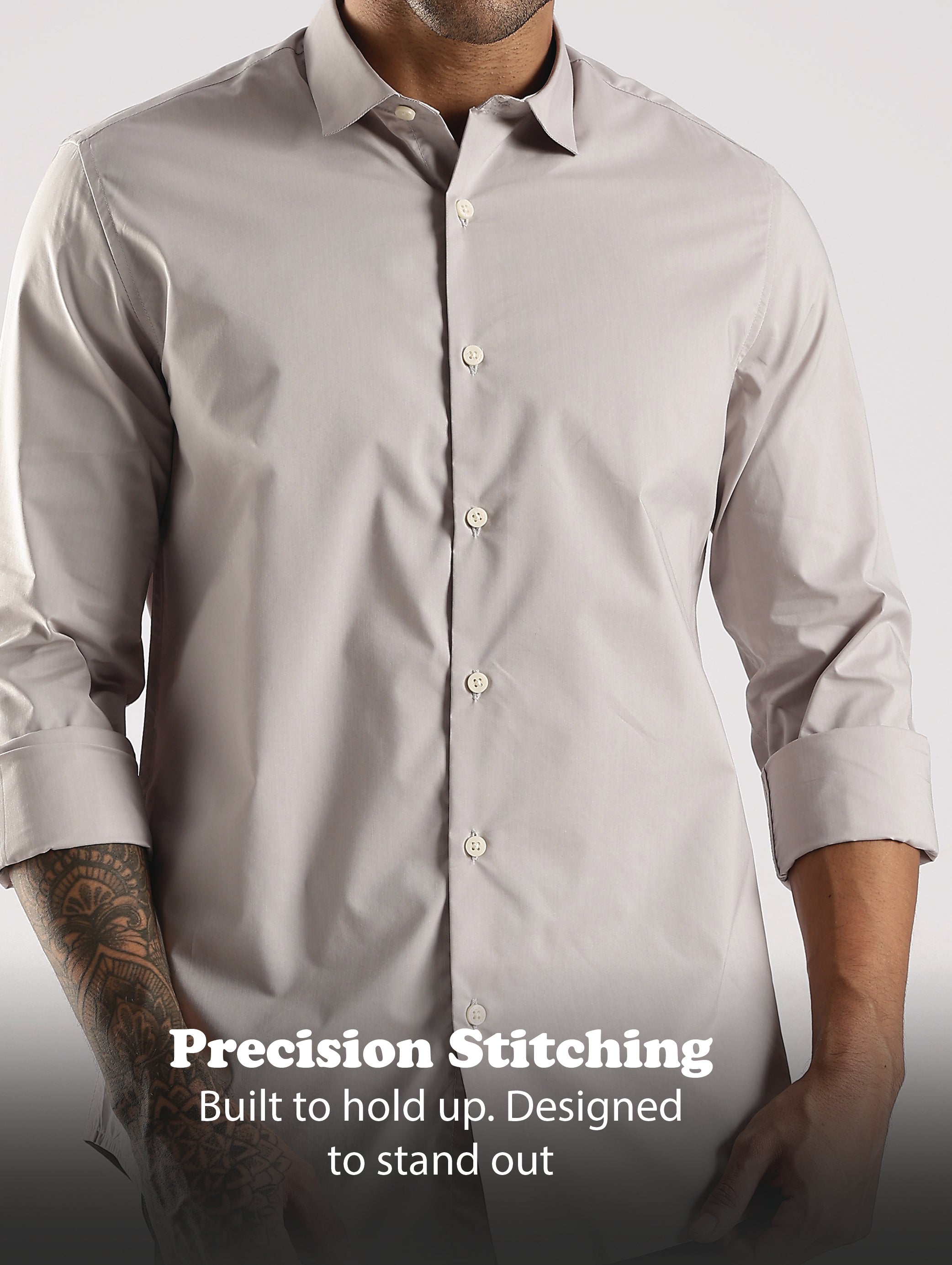 100% Cotton Slim Fit Shirt Lt Grey