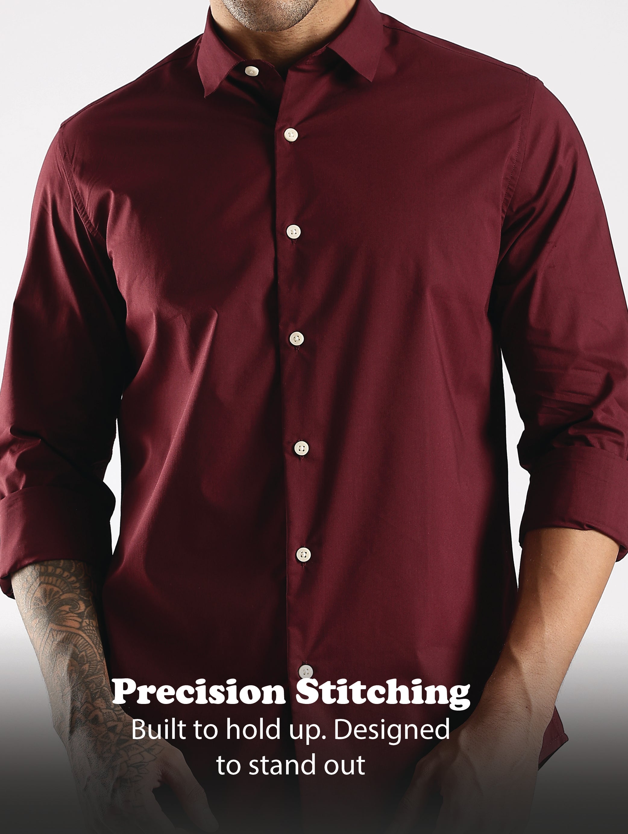 Upgrade your everyday style with this maroon slim-fit shirt, crafted from 100% pure cotton for breathable comfort and a refined look. The clean solid design and neatly tailored silhouette make it versatile for both casual outings and smart occasions.