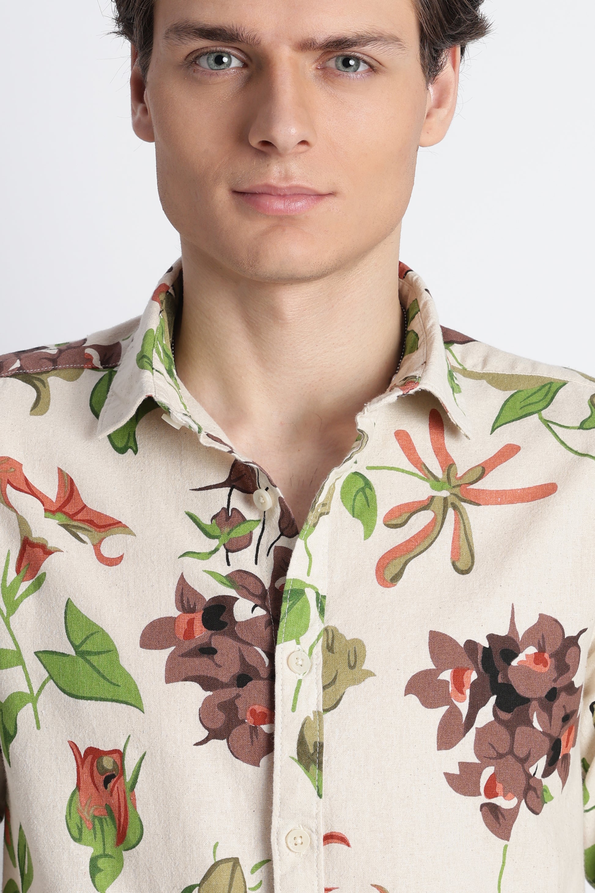 The slim fit keeps the look structured and refined, while the all-over block print adds character without overpowering your style. Designed with full sleeves and a clean, pocket-free front, this shirt stays minimal and versatile. The classic spread collar completes the look, making it easy to dress up or down depending on the occasion.