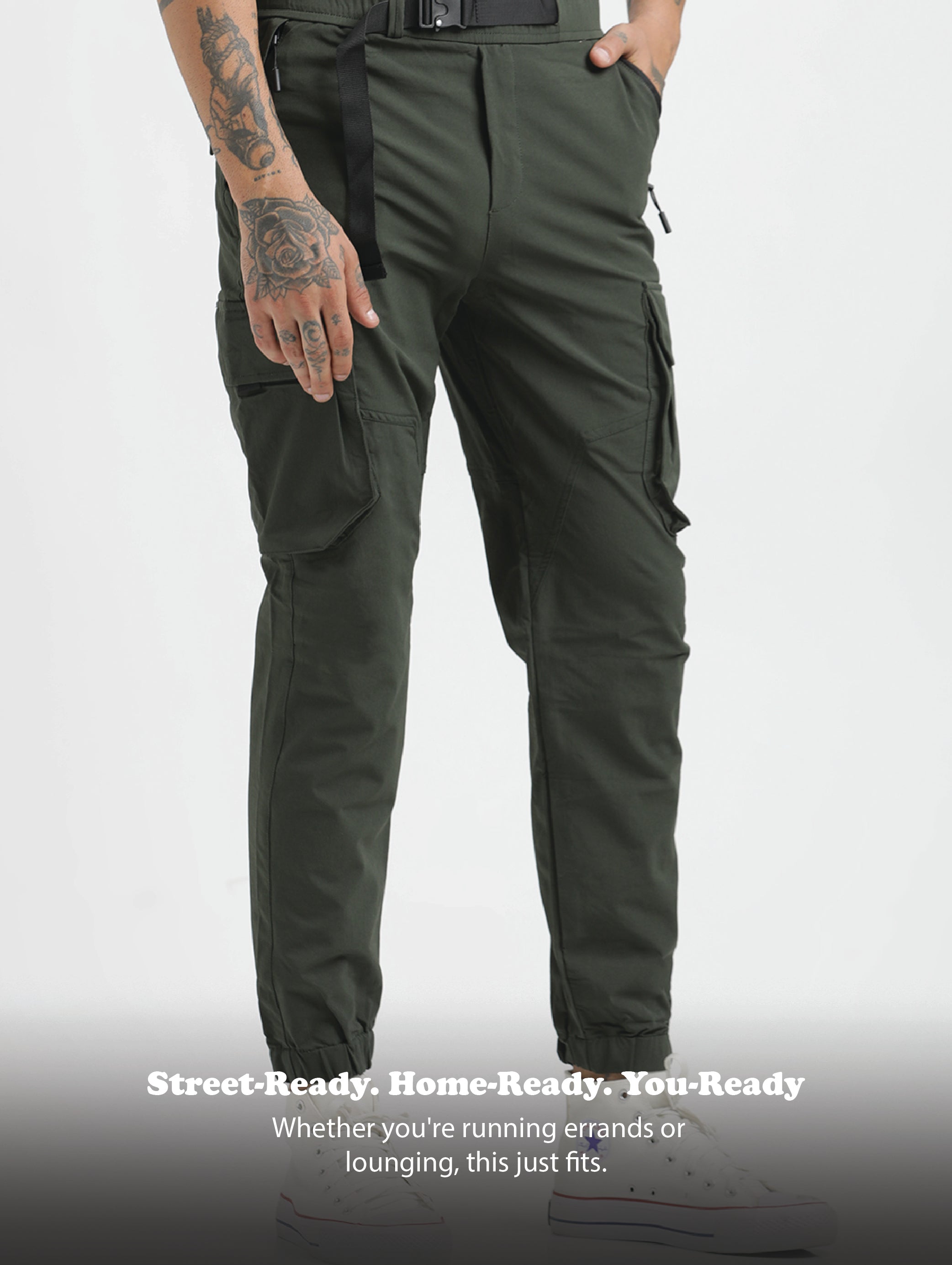Cargo Joggers with Multi-Pocket Design Green