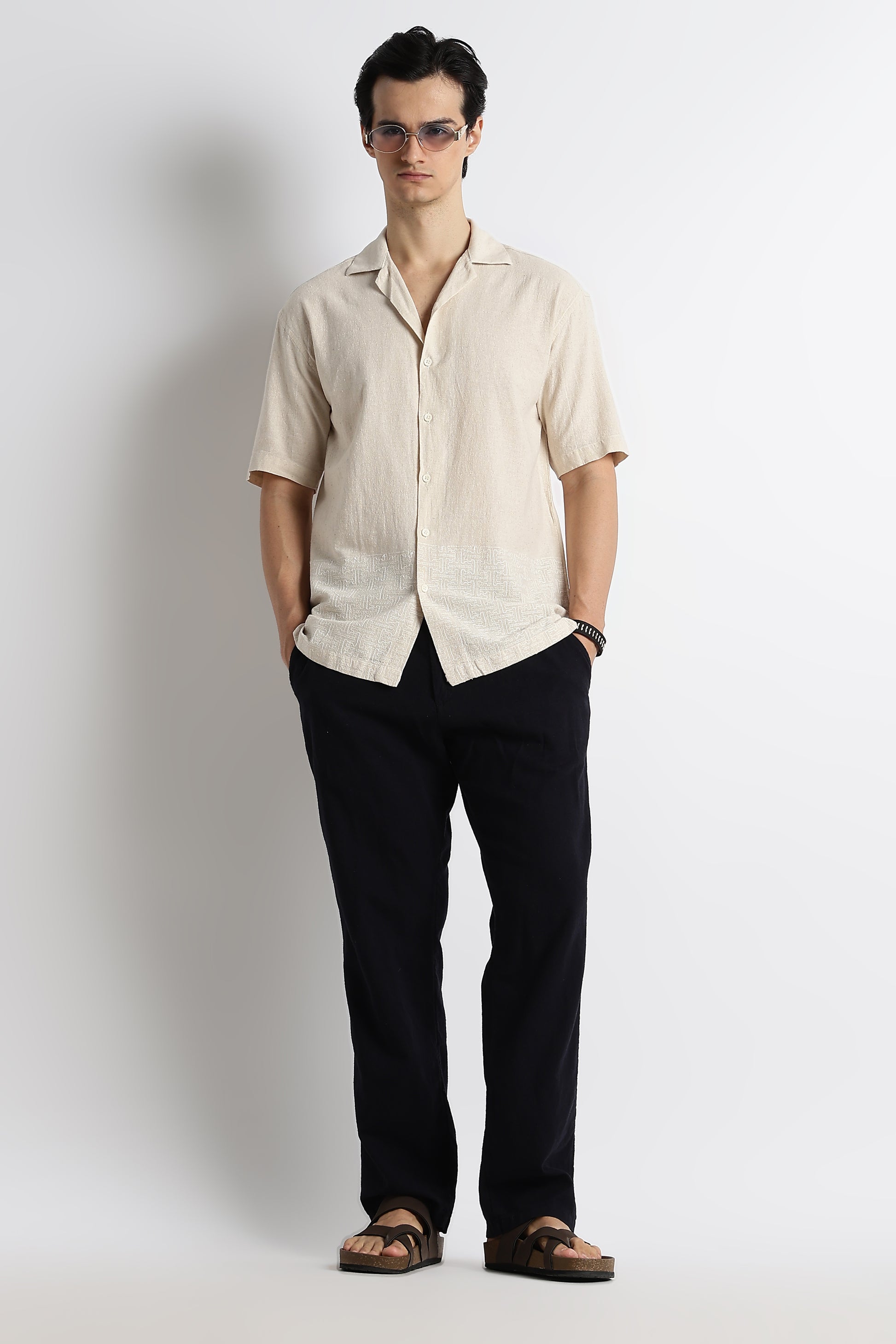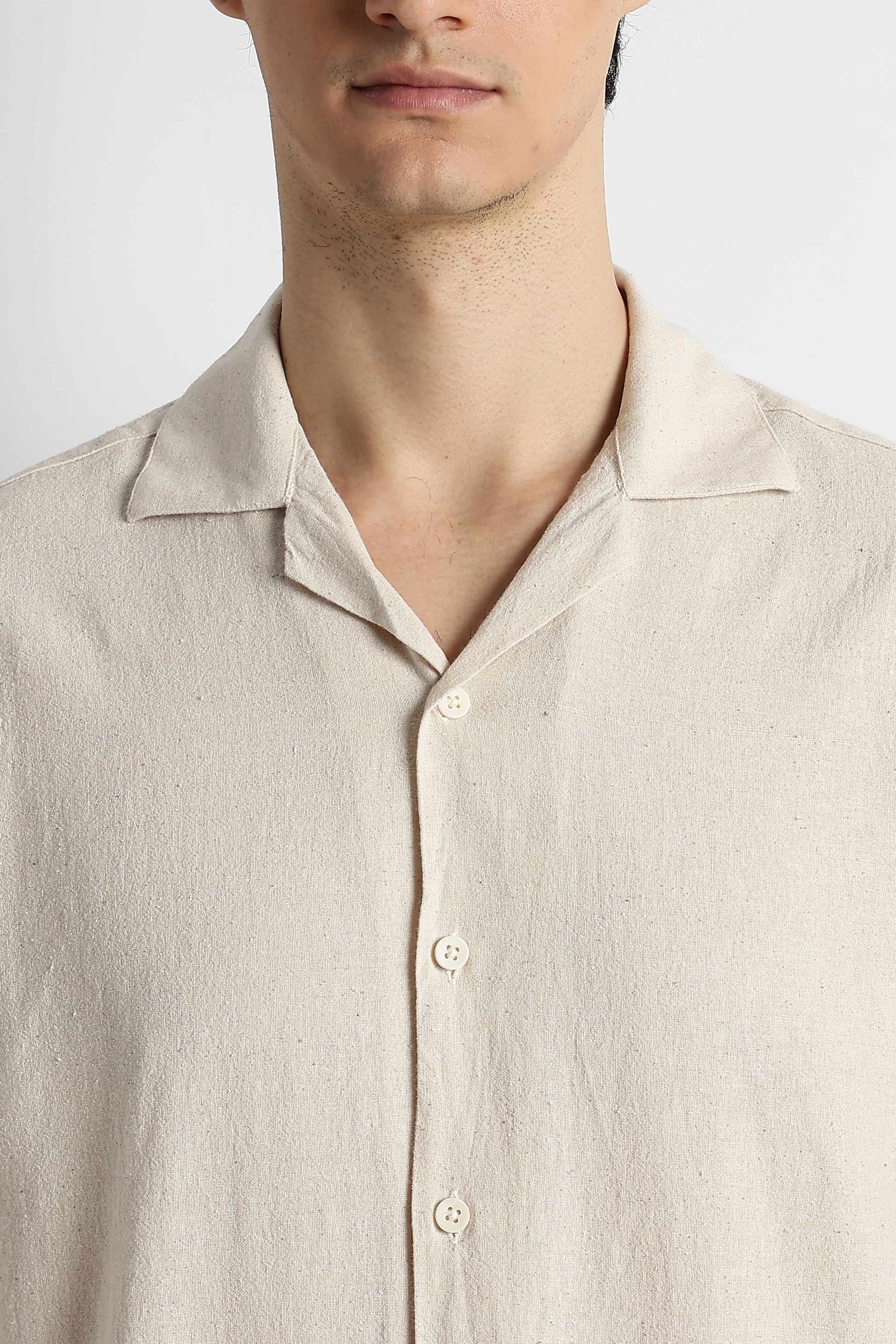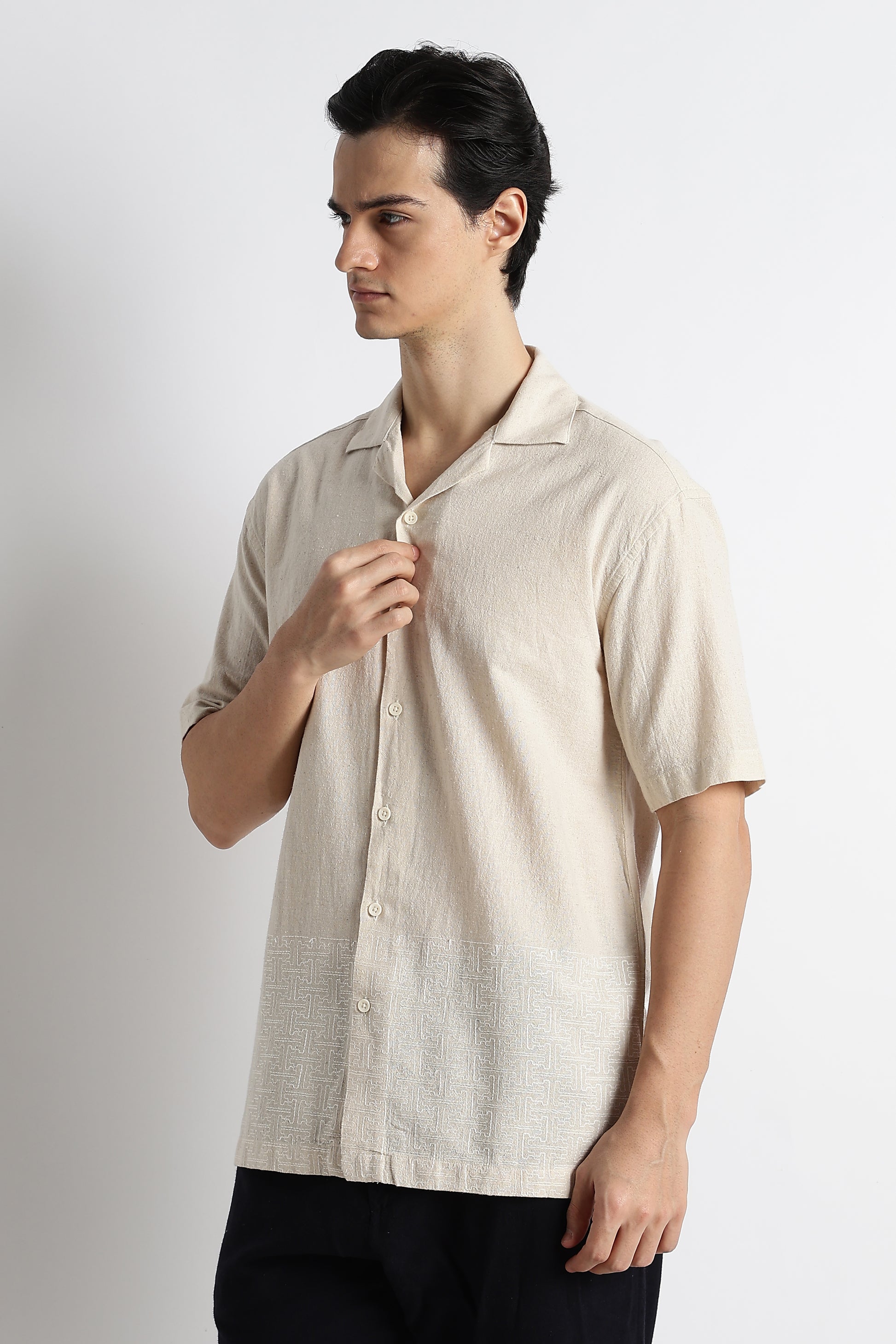 A quiet essential for warm days and easy evenings. This Cream half-sleeve shirt is crafted from 100% breathable cotton, giving it a naturally soft, airy feel perfect for everyday comfort.