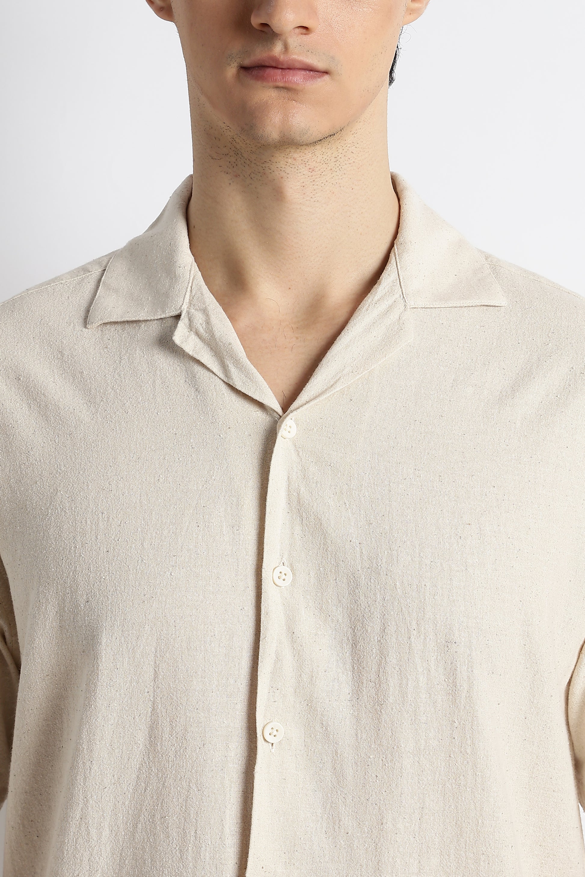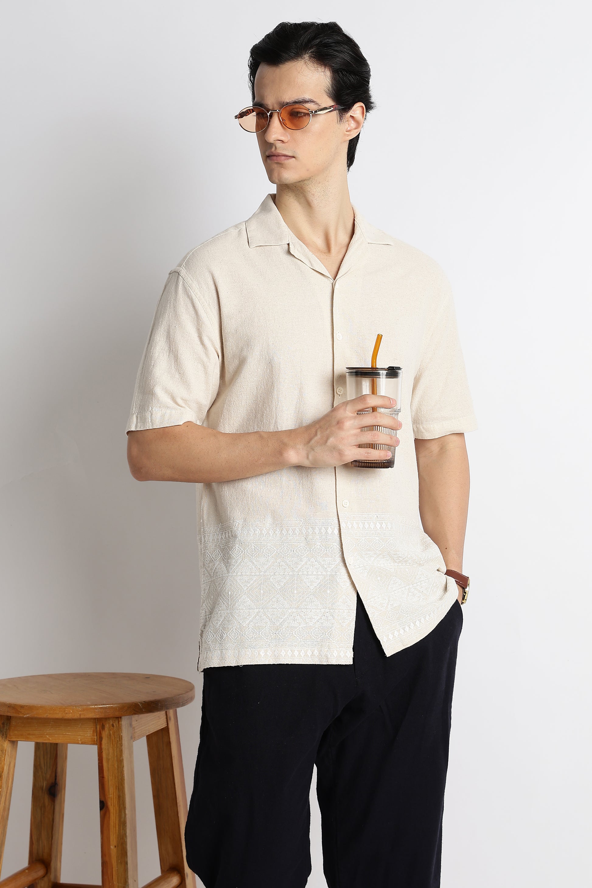 A quiet essential for warm days and easy evenings. This Cream half-sleeve shirt is crafted from 100% breathable cotton, giving it a naturally soft, airy feel perfect for everyday comfort.
