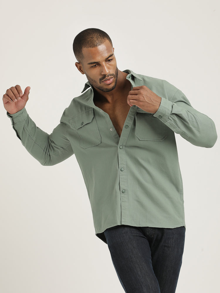 Casual Fit Cotton Shirt with Double Pockets Lt Green