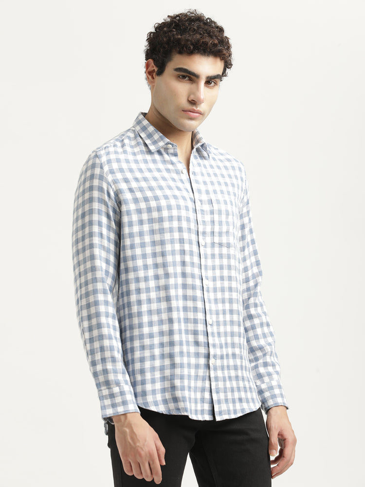A refined take on everyday casuals, this slim-fit shirt is crafted from a breathable cotton-linen blend. Featuring a soft check pattern, full sleeves, and a single chest pocket, it’s designed to keep you comfortable and sharp through the day.
