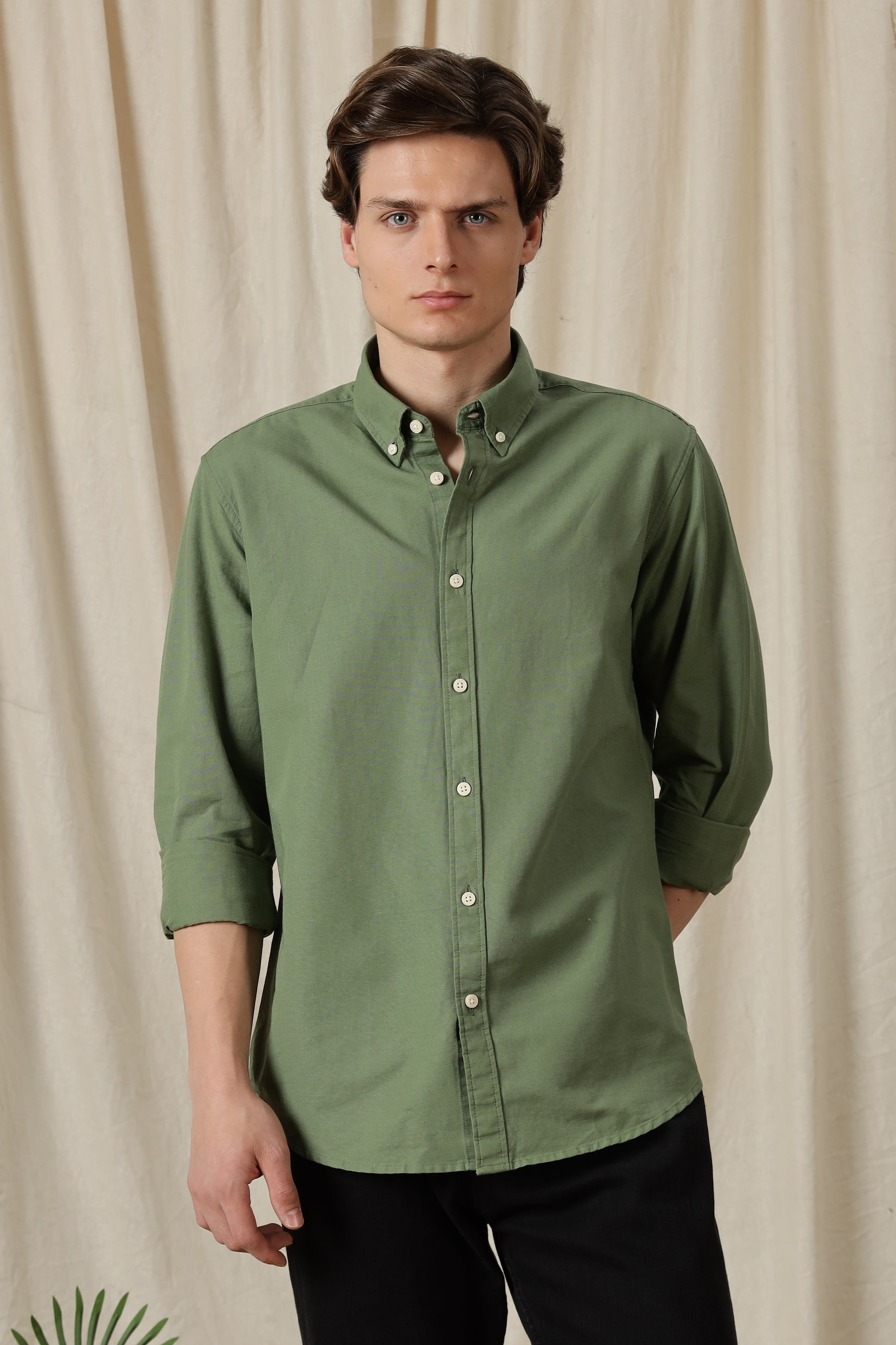 Classic Button-Down Solid Casual Shirt Green