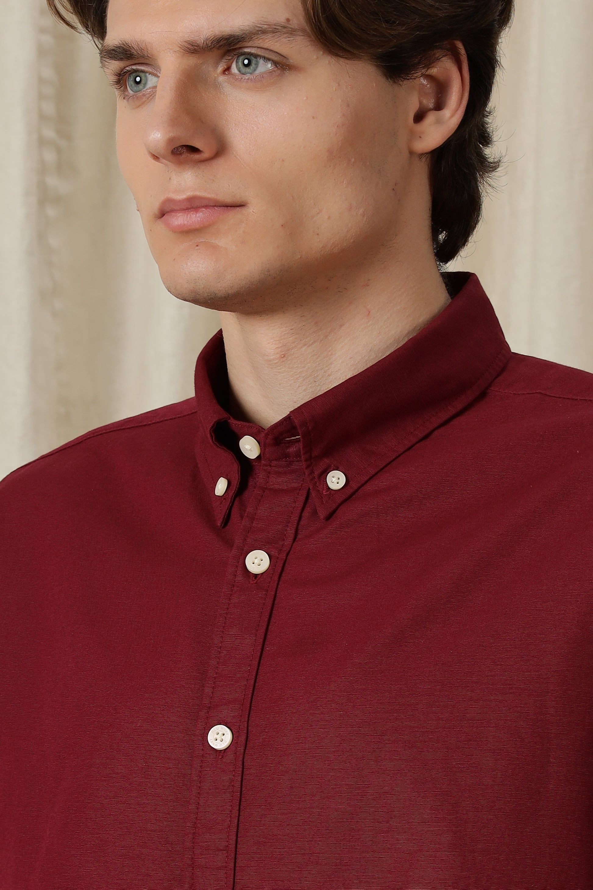 Classic Button-Down Solid Casual Shirt Maroon