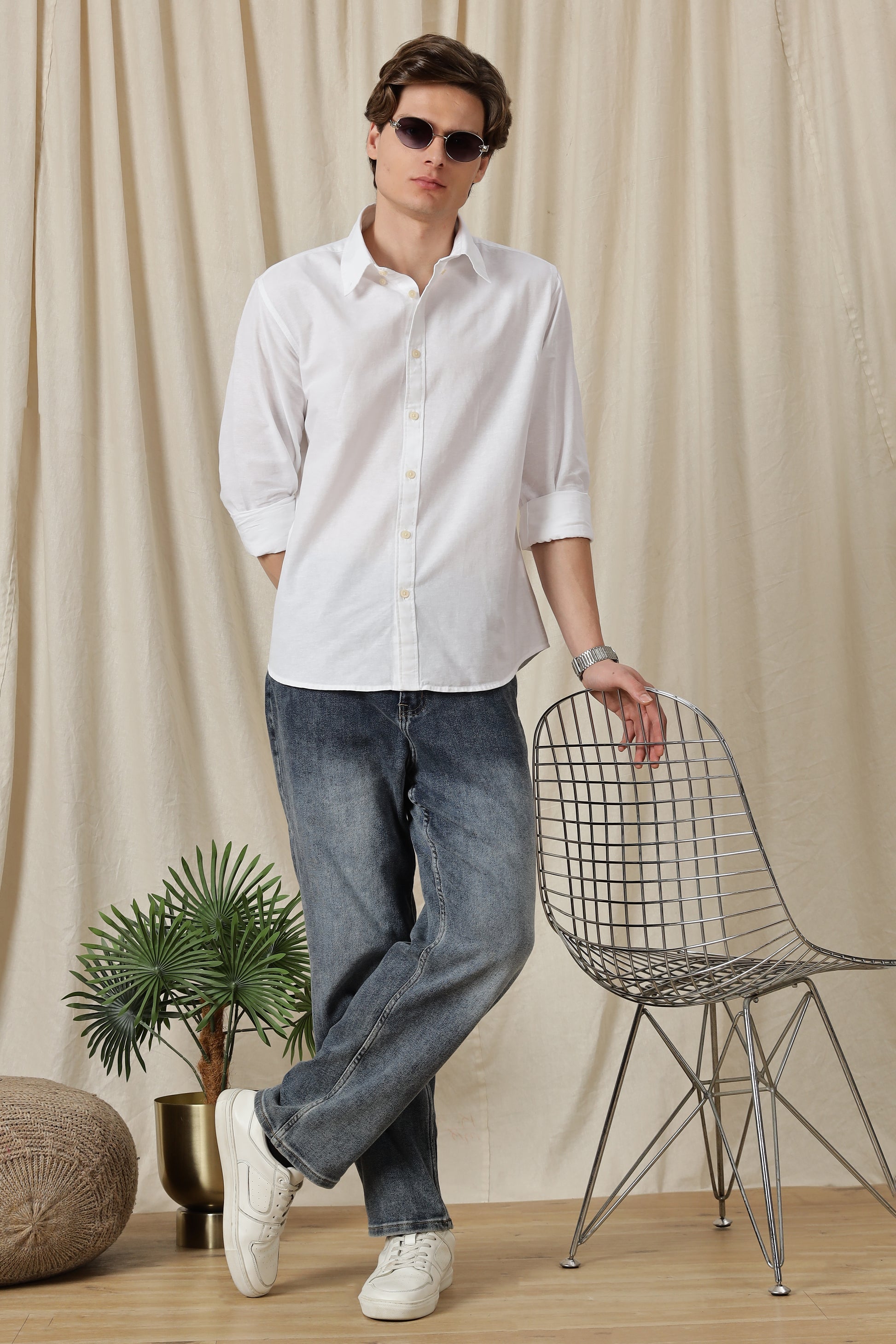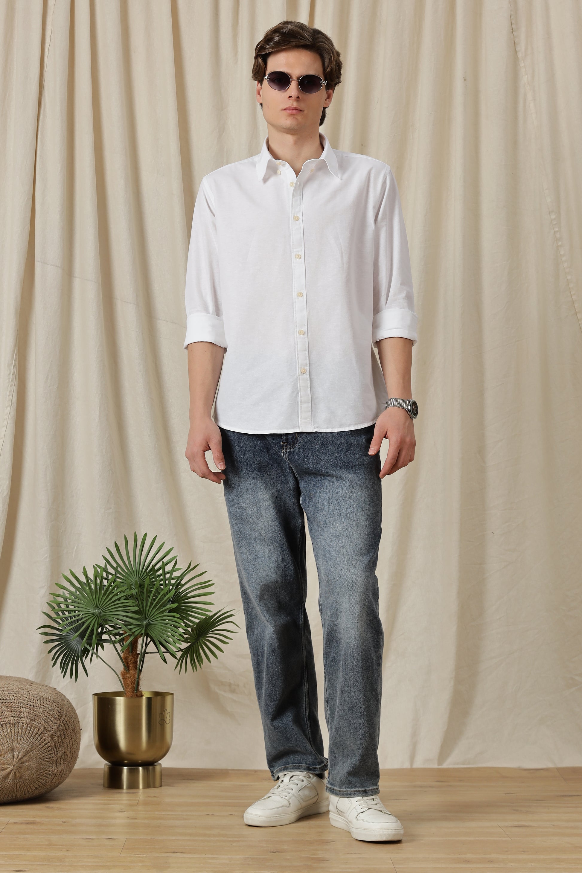 Classic Button-Down Solid Casual Shirt White