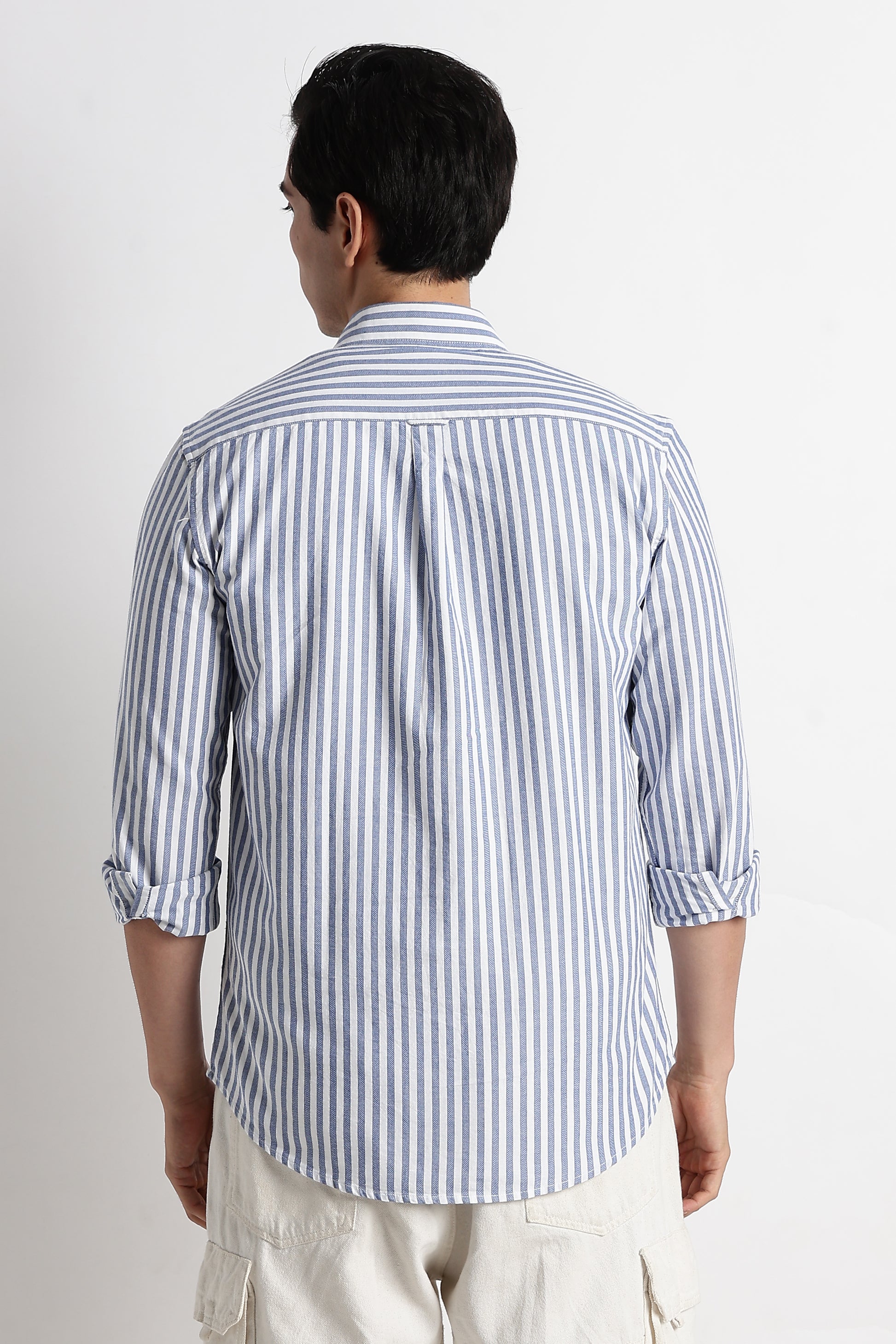 A quiet essential that balances structure and ease. This 100% cotton strxiped shirt is crafted for a breathable, lightweight feel — designed to move seamlessly from day plans to dinner hours. The slim fit and soft vertical stripes add length and definition, keeping it timeless yet effortless.