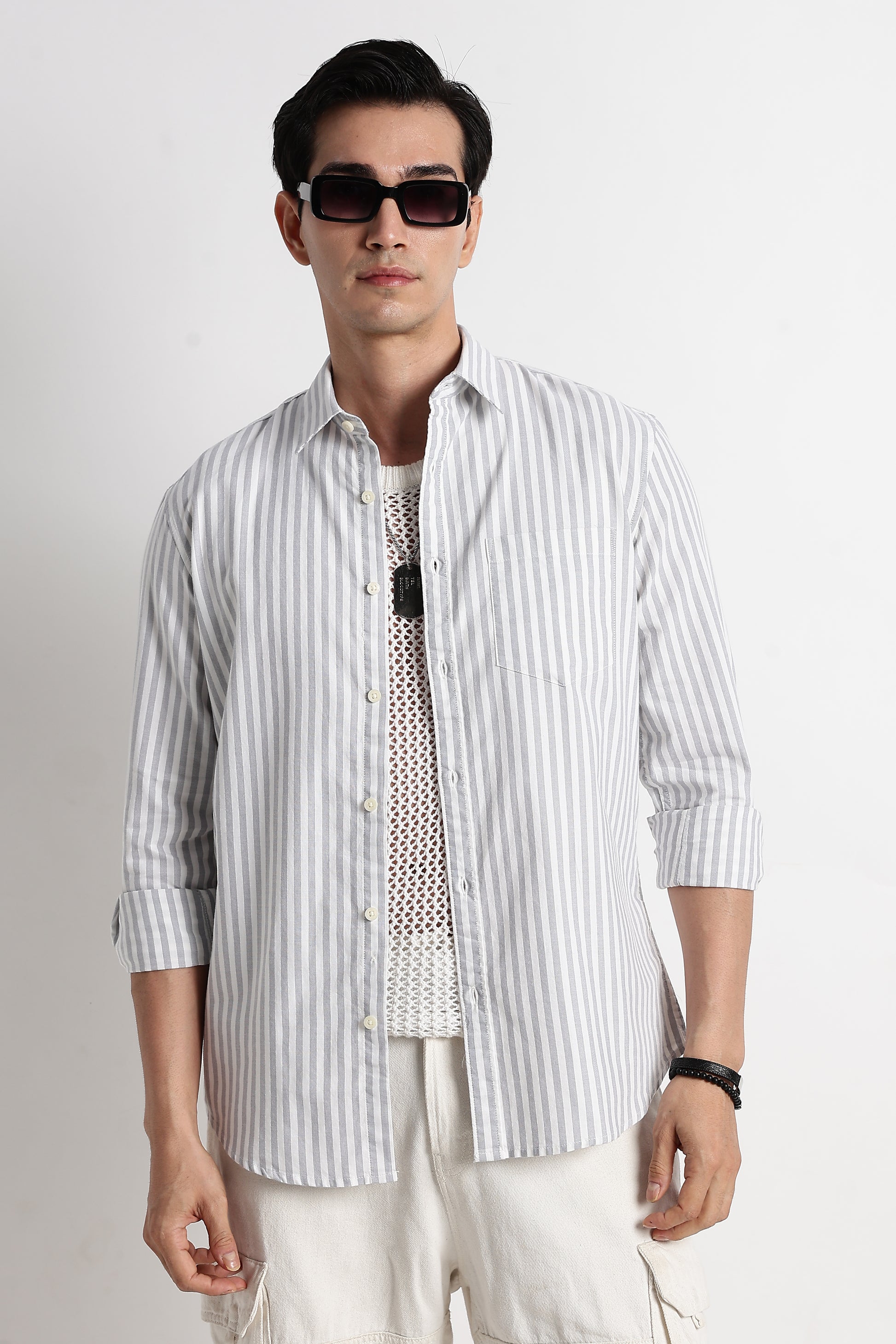 A quiet essential that balances structure and ease. This 100% cotton strxiped shirt is crafted for a breathable, lightweight feel — designed to move seamlessly from day plans to dinner hours. The slim fit and soft vertical stripes add length and definition, keeping it timeless yet effortless.