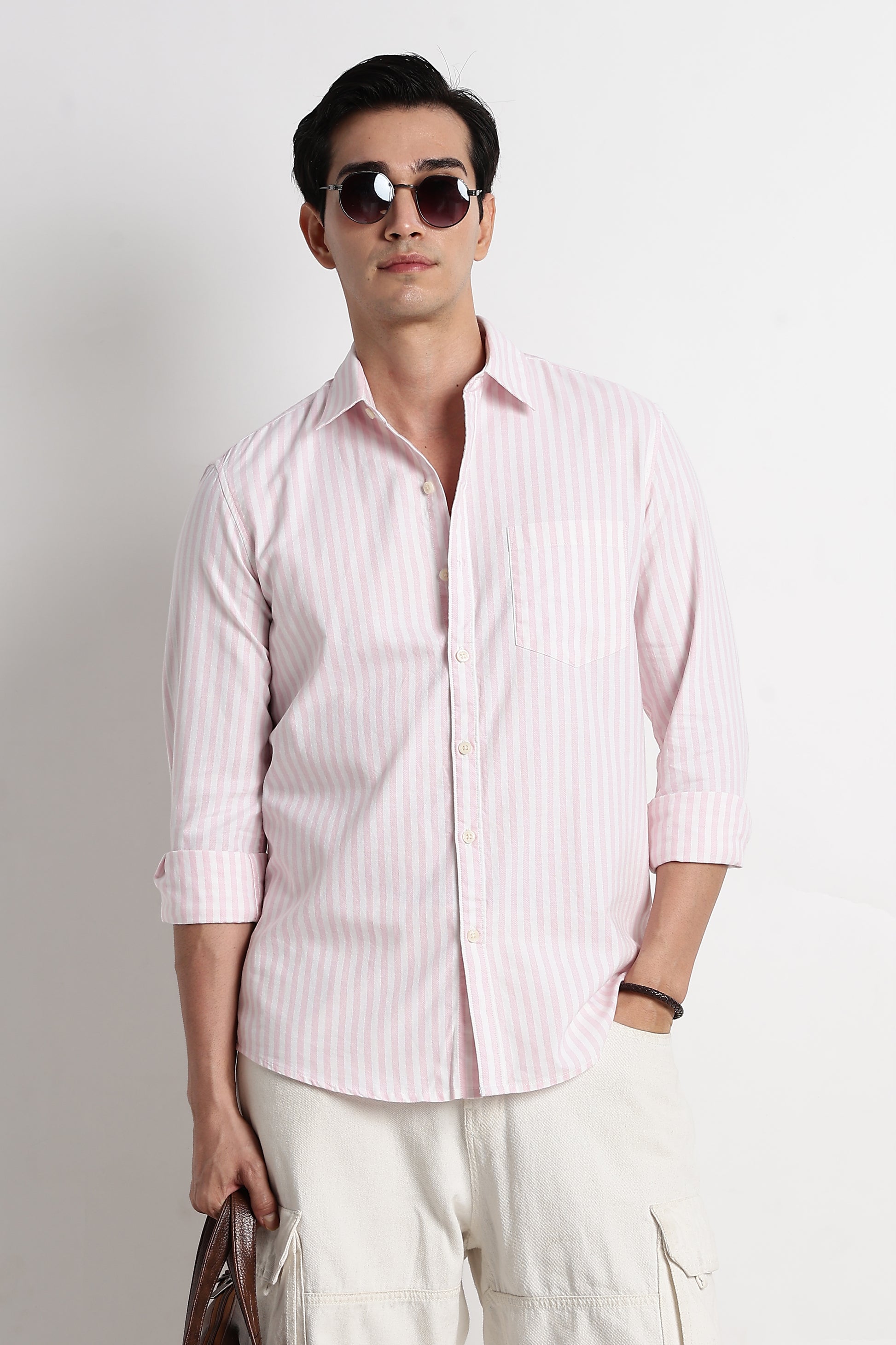 7Classic Cotton Slim Fit Striped Shirt Pink