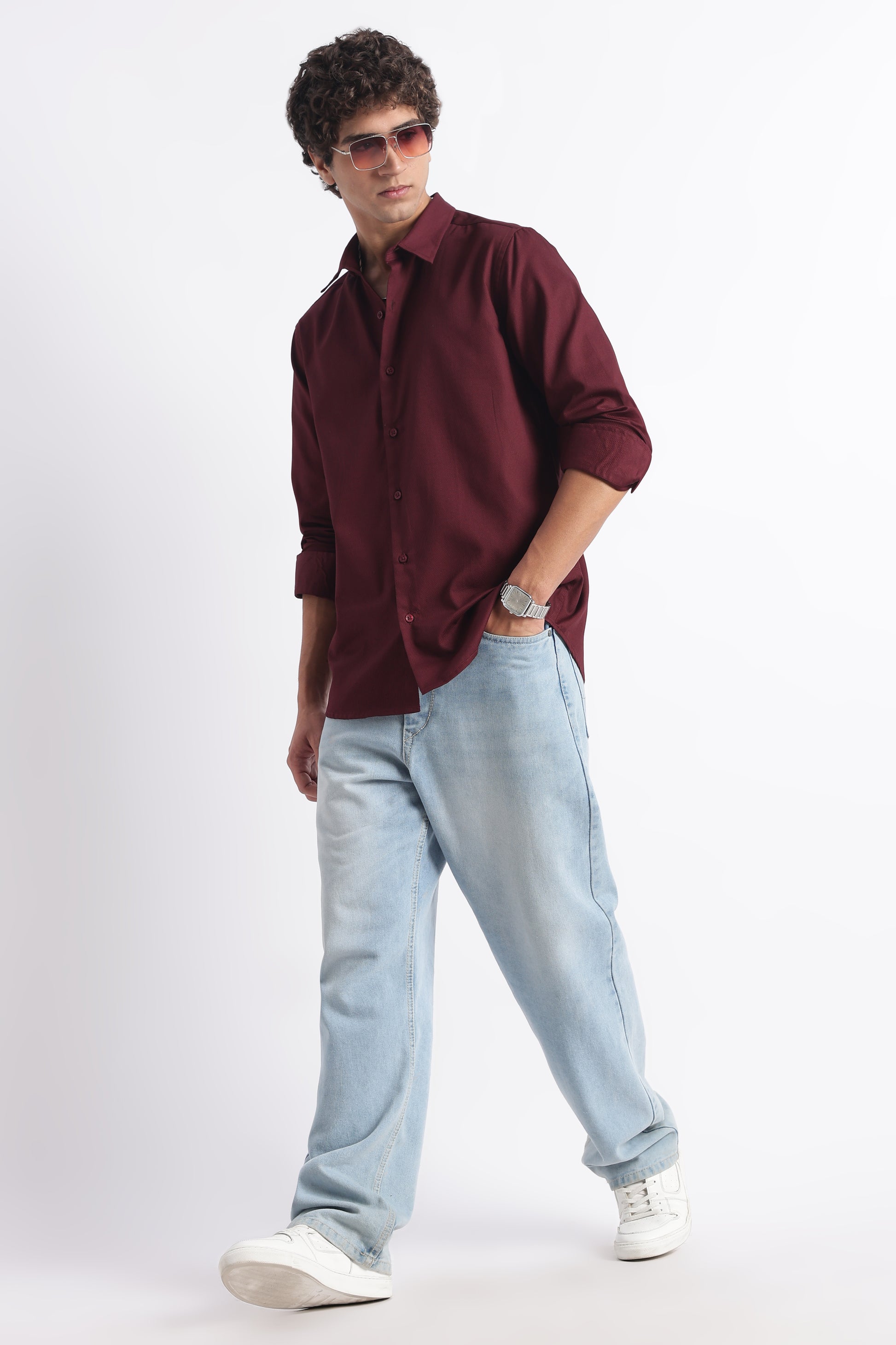 Classic Dobby Solid Shirt Maroon