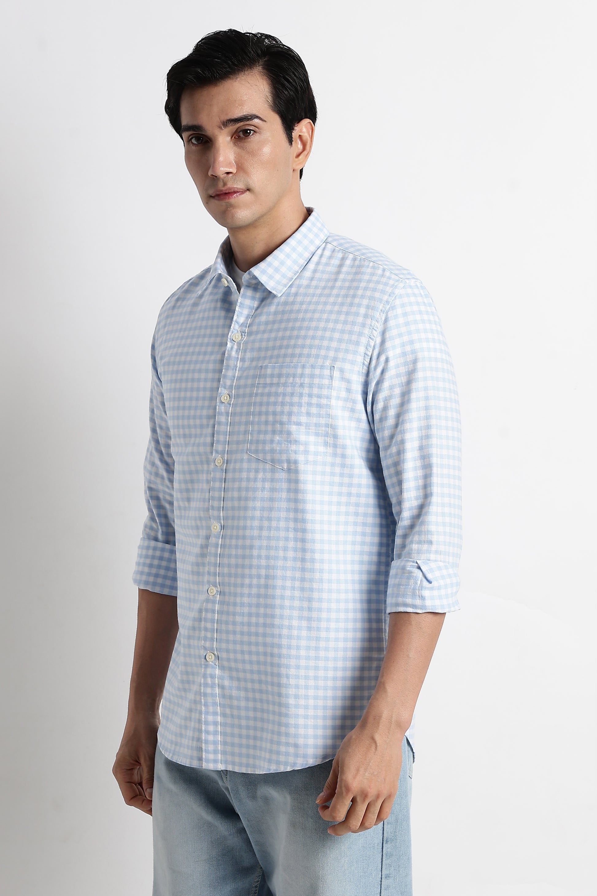 Classic Oxford Check Shirt for Men Blue