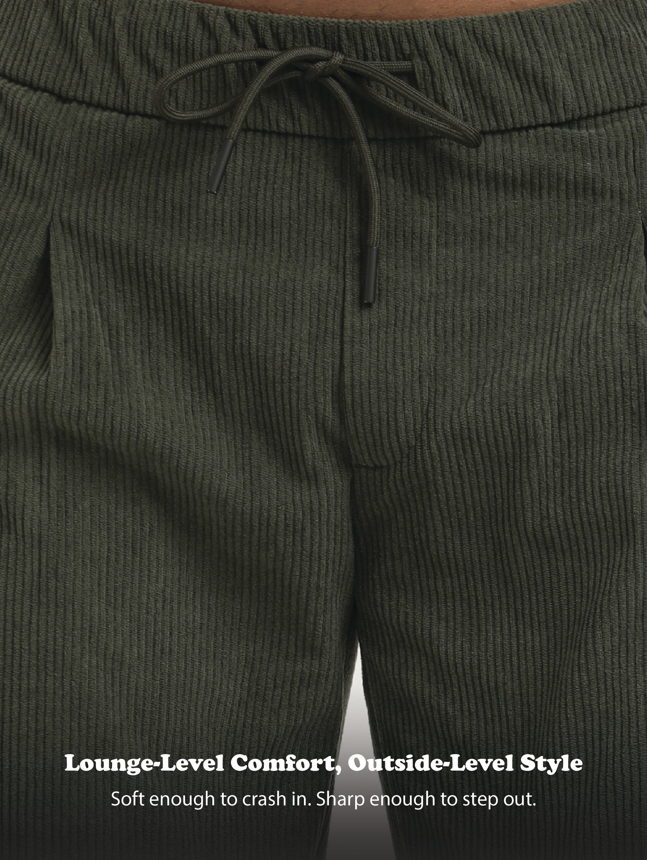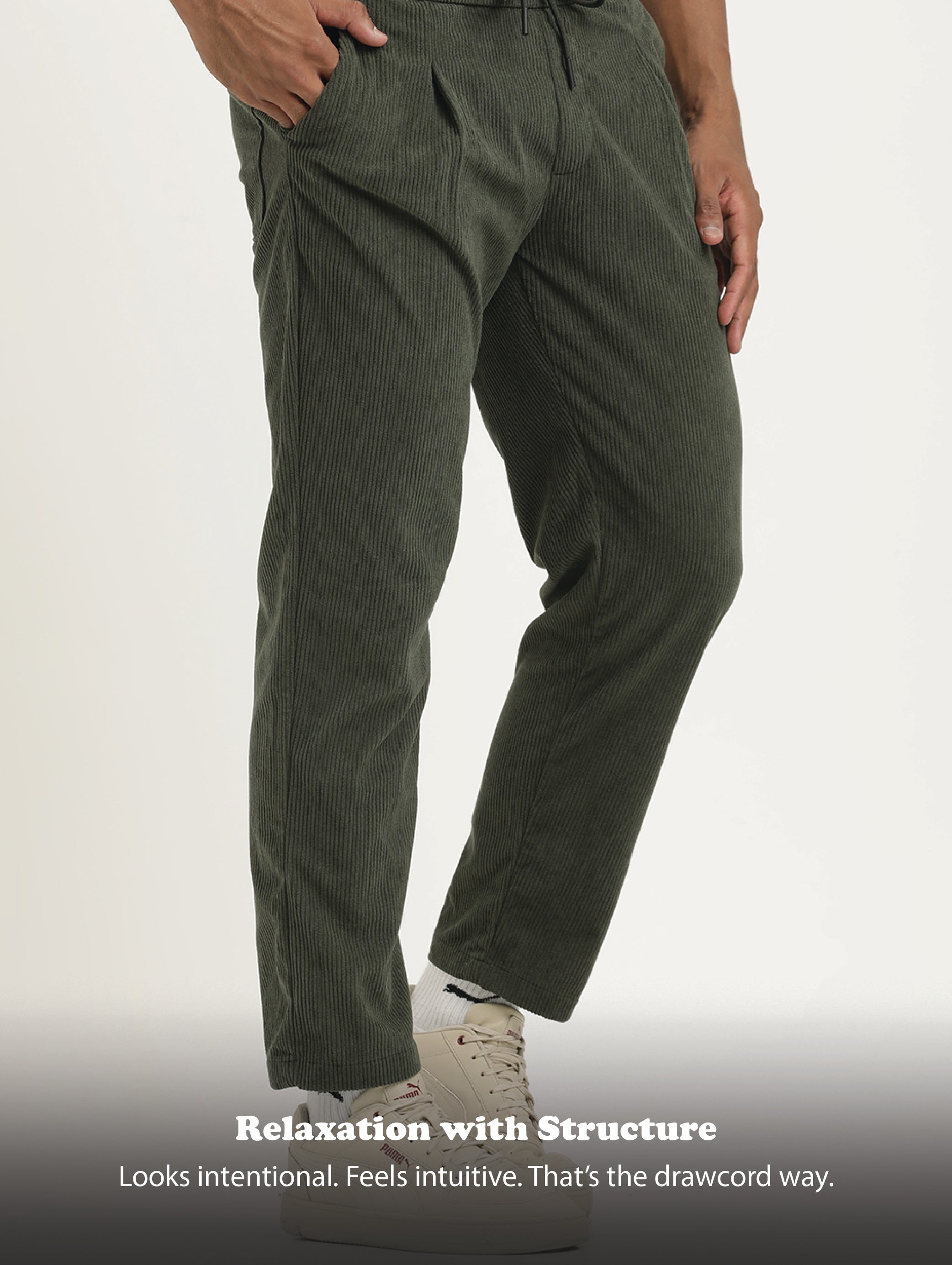 Comfort Fit Corduroy Trousers with Multhi Pockets Green
