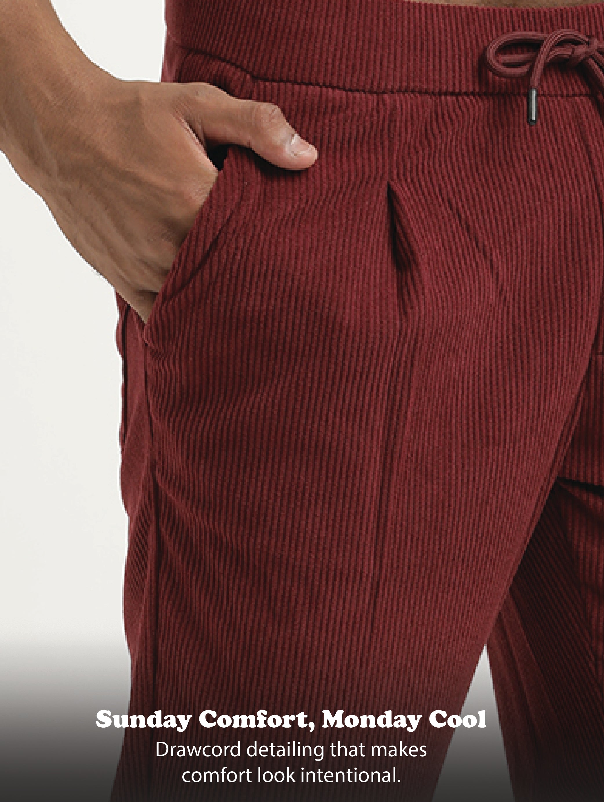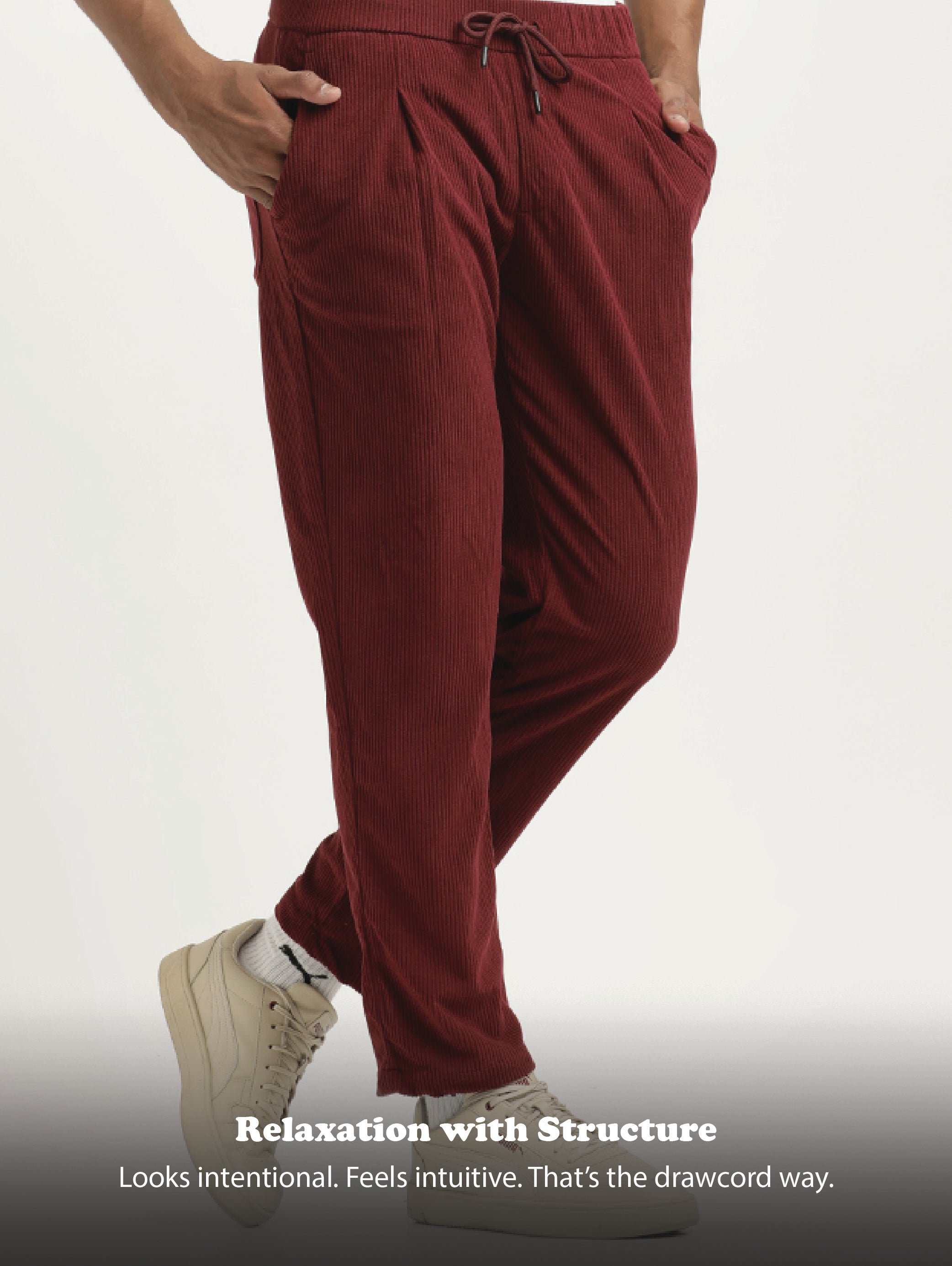 Comfort Fit Corduroy Trousers with Multhi Pockets Maroon