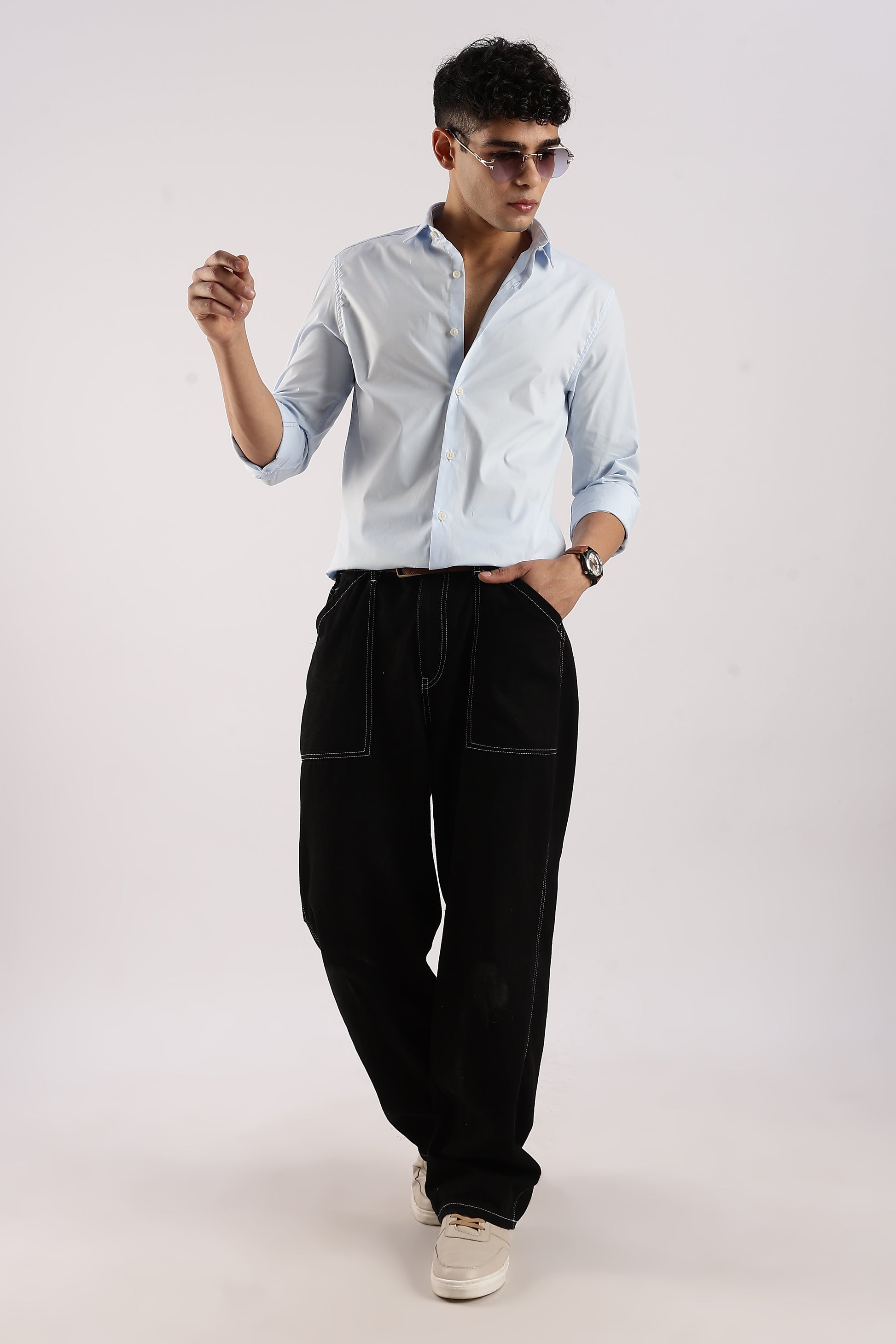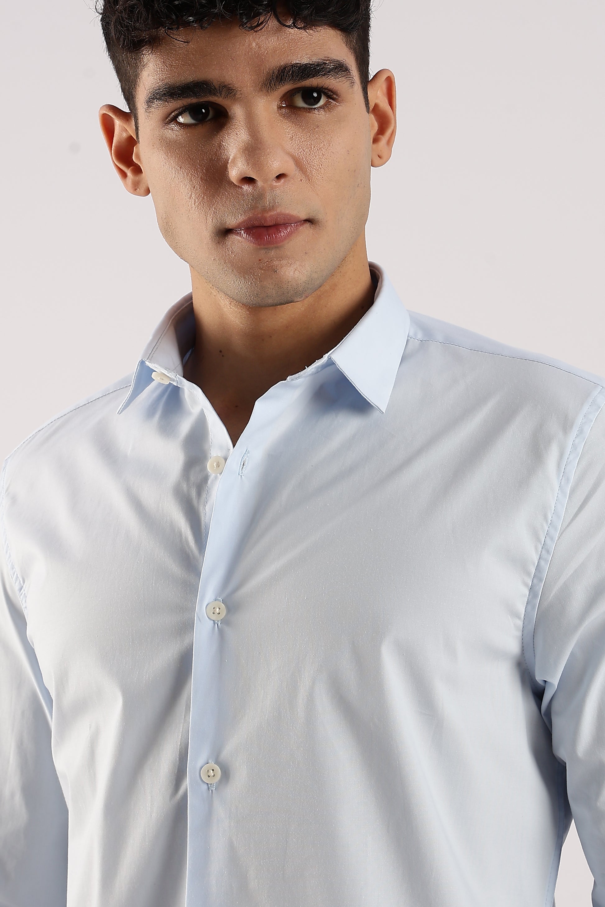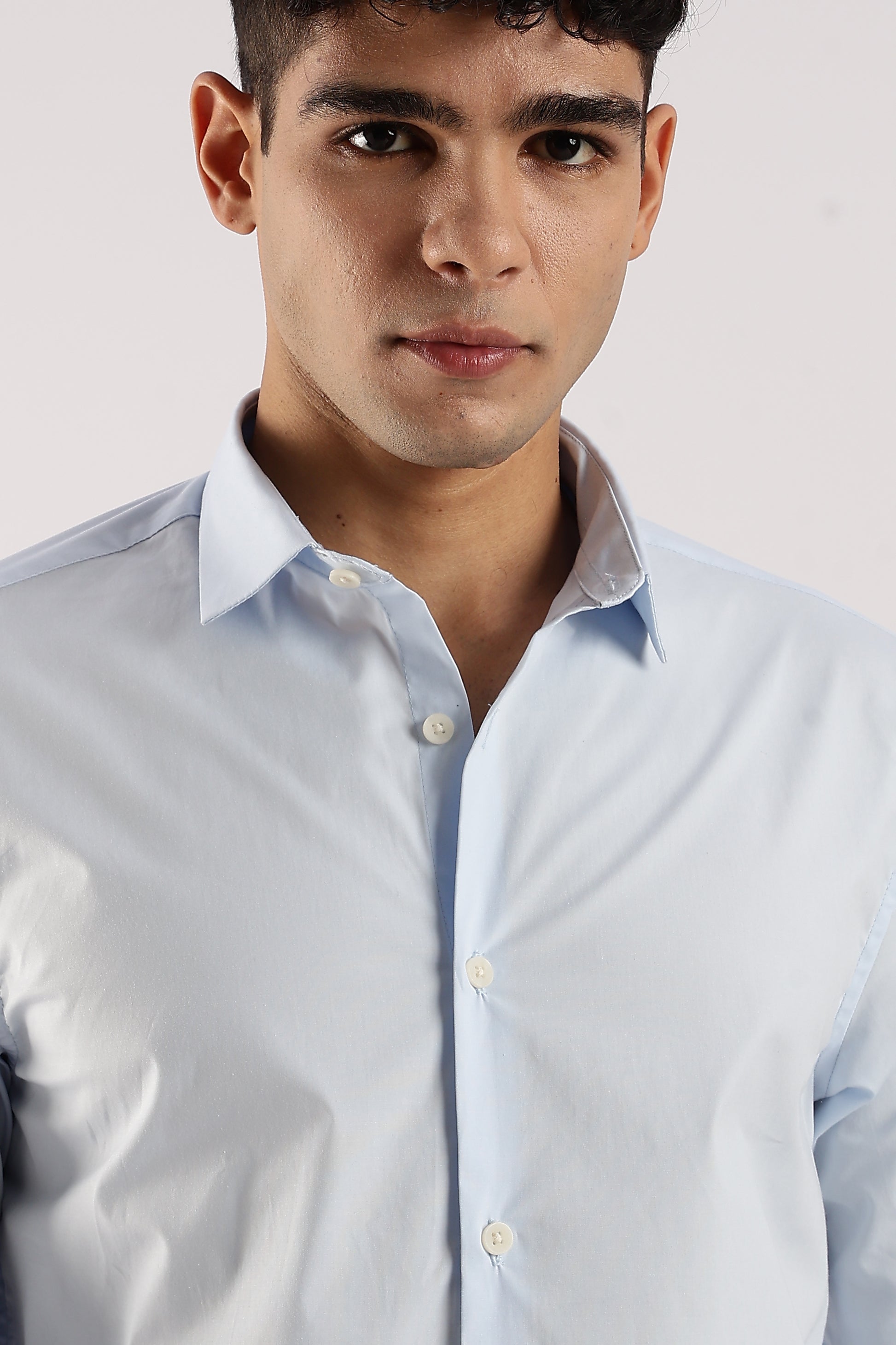 Cotton Lycra Slim Fit Shirt Sky Blue