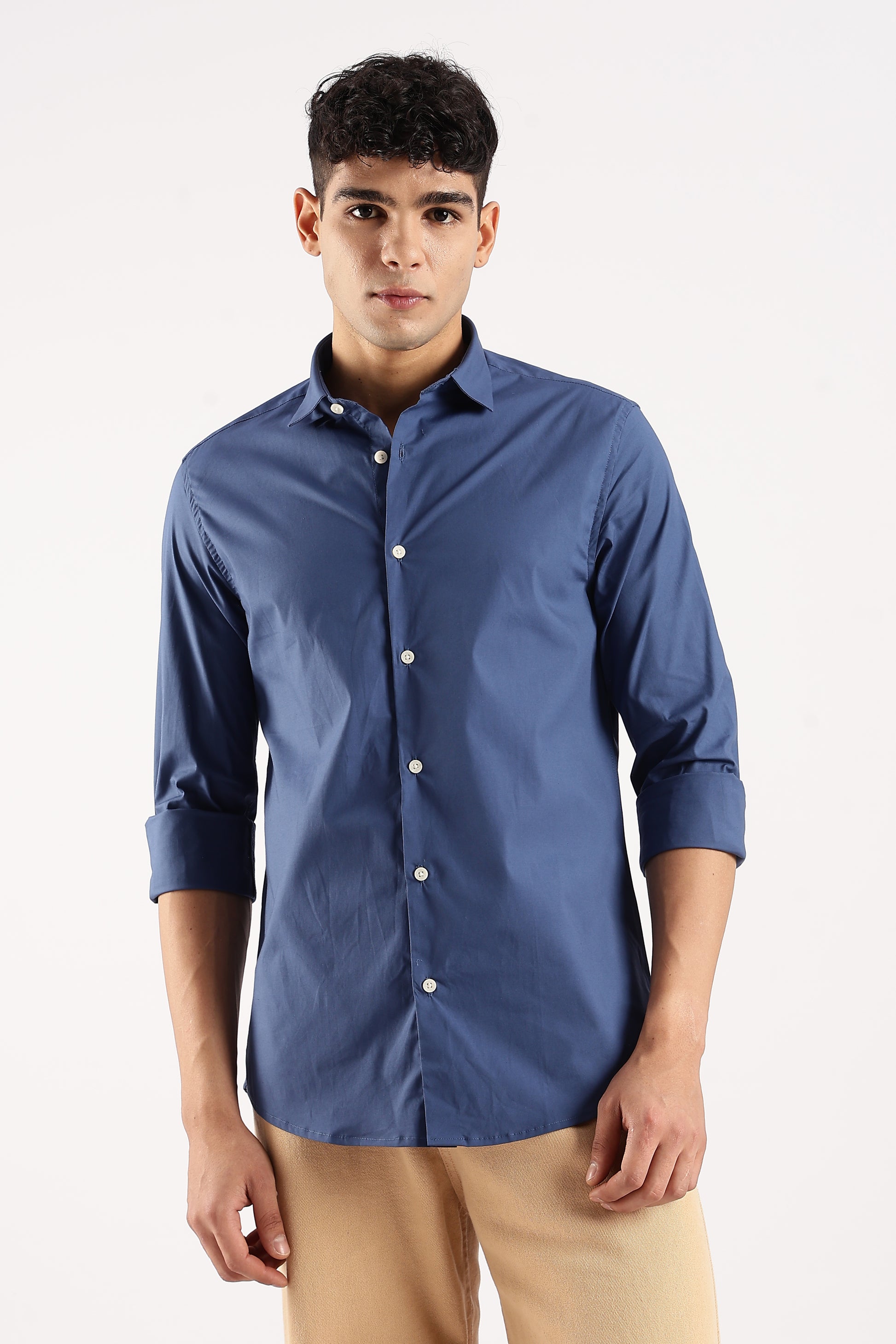 Cotton Lycra Slim Fit Shirt Blue