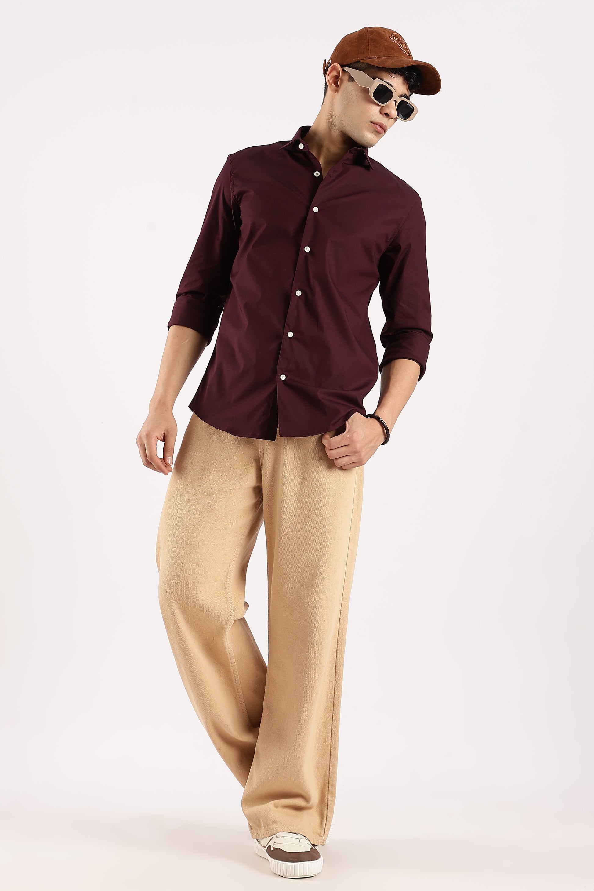 Sleek, soft, and effortlessly versatile — this brown slim-fit shirt is crafted from super fine cotton lycra that moves with you. The lightweight stretch fabric ensures all-day comfort while keeping a refined, polished look.