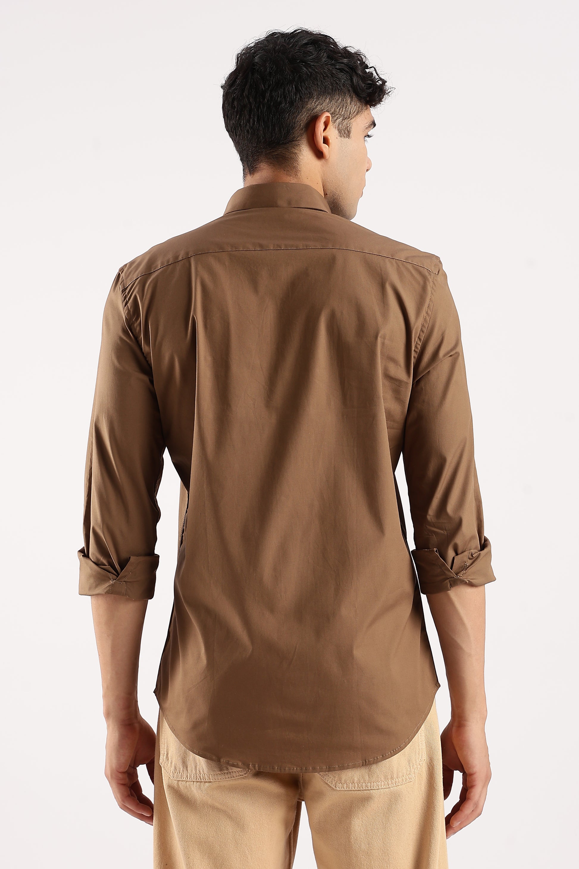 Sleek, soft, and effortlessly versatile — this brown slim-fit shirt is crafted from super fine cotton lycra that moves with you. The lightweight stretch fabric ensures all-day comfort while keeping a refined, polished look.