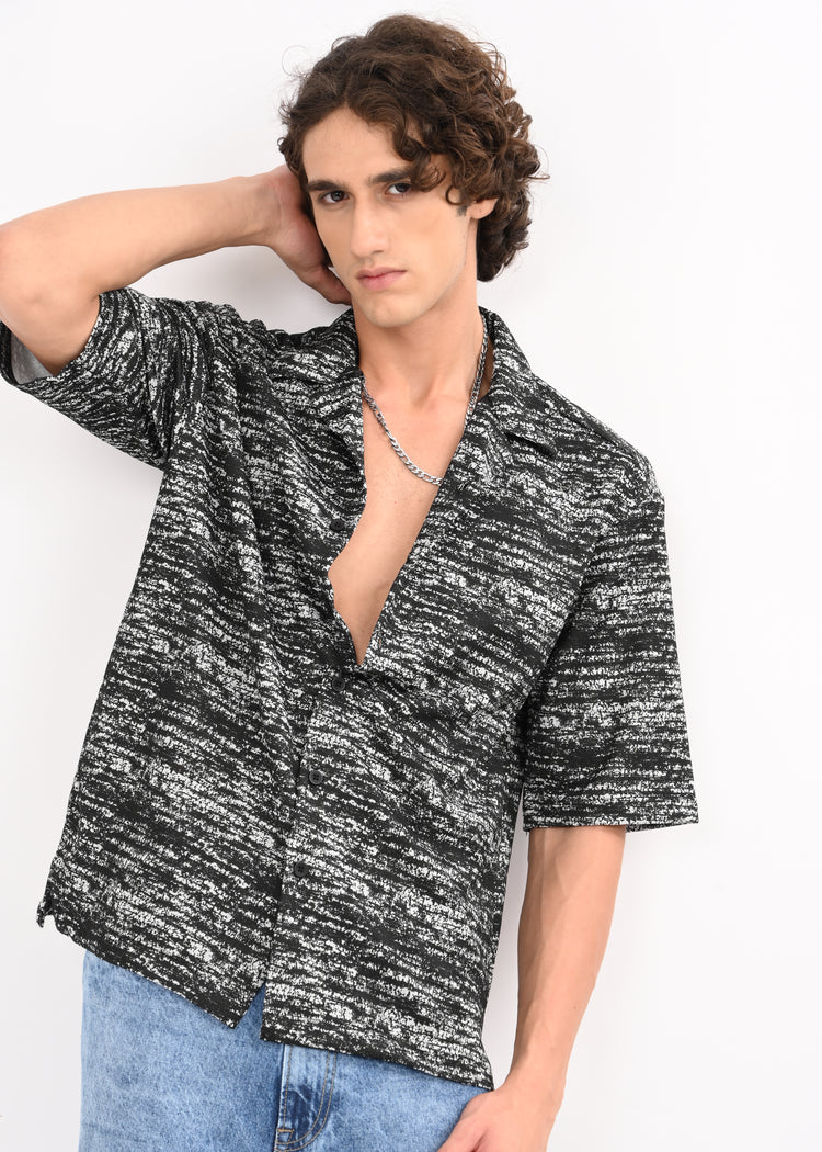 This isn’t your typical casual shirt. Made from a breathable poly cotton knit, this self-designed piece fuses comfort with bold, textured expression. The black-and-white abstract streak pattern feels modern, raw, and effortlessly cool — perfect for those who like to keep it laid-back without blending in.