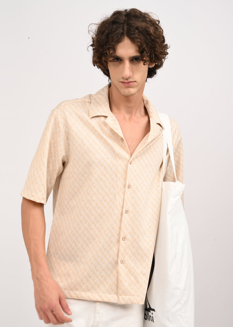 Cuban Collar Knitted Shirt Beige