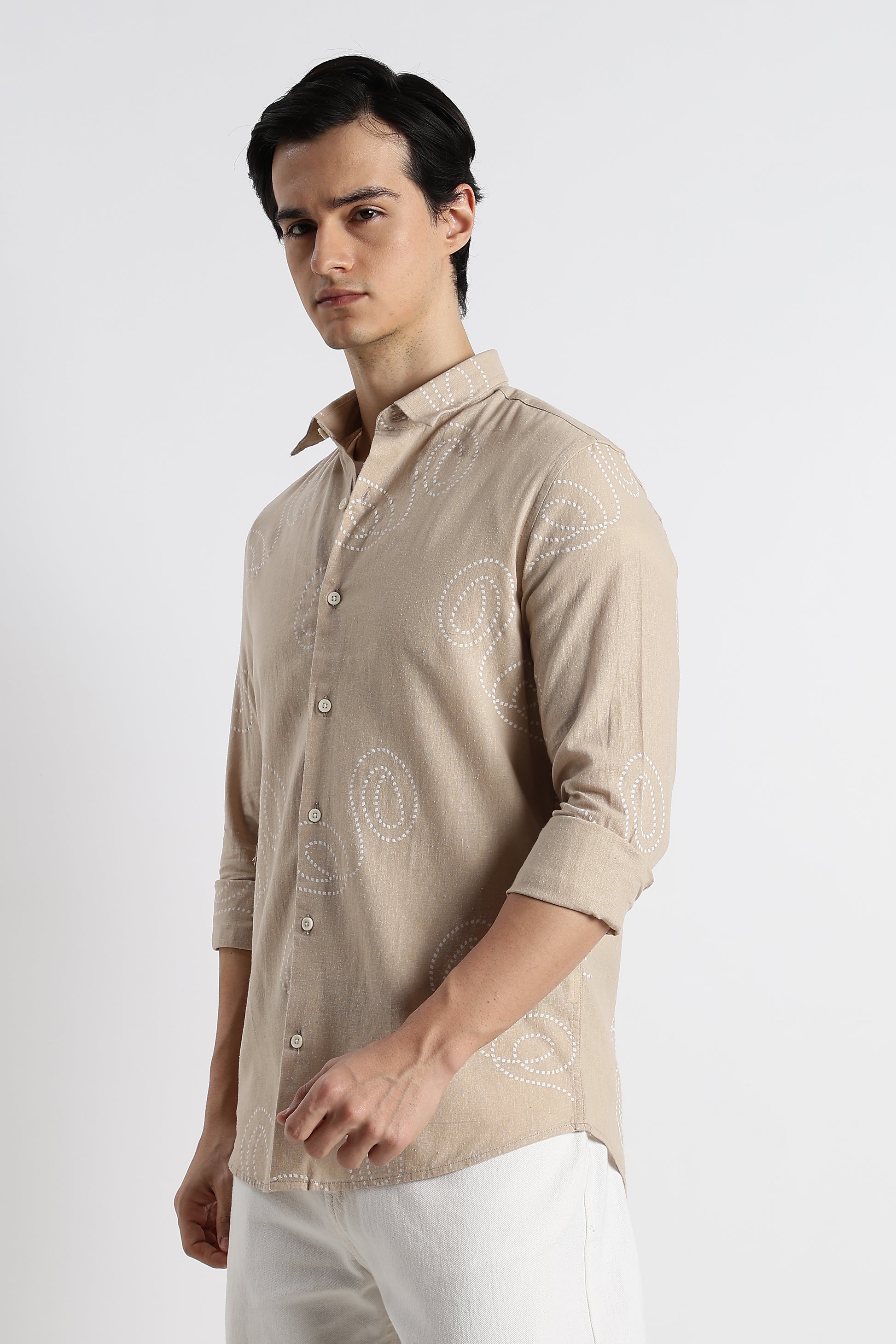 Dotted Swirl Printed Cotton Linen Shirt Cream