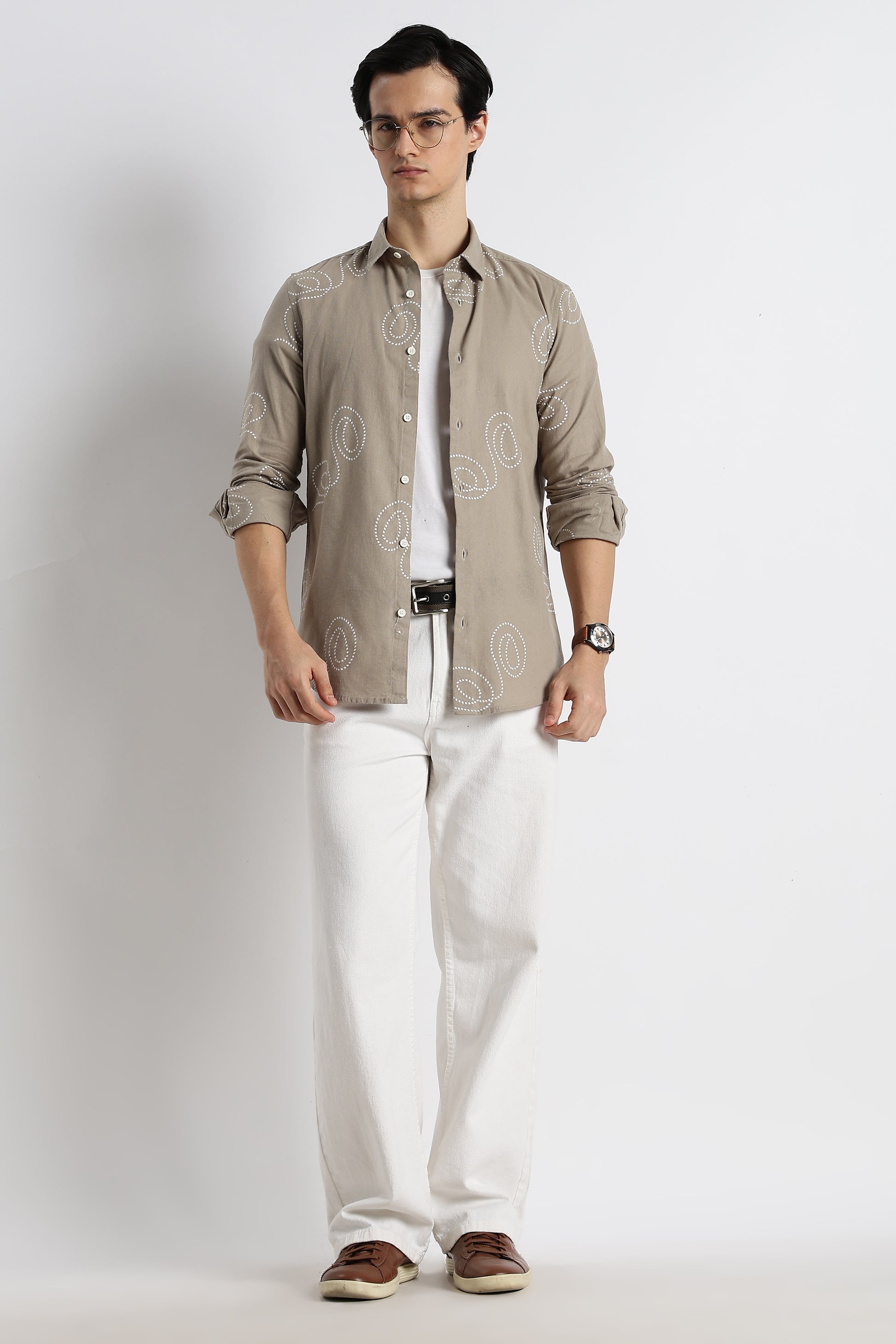 Dotted Swirl Printed Cotton Linen Shirt Grey