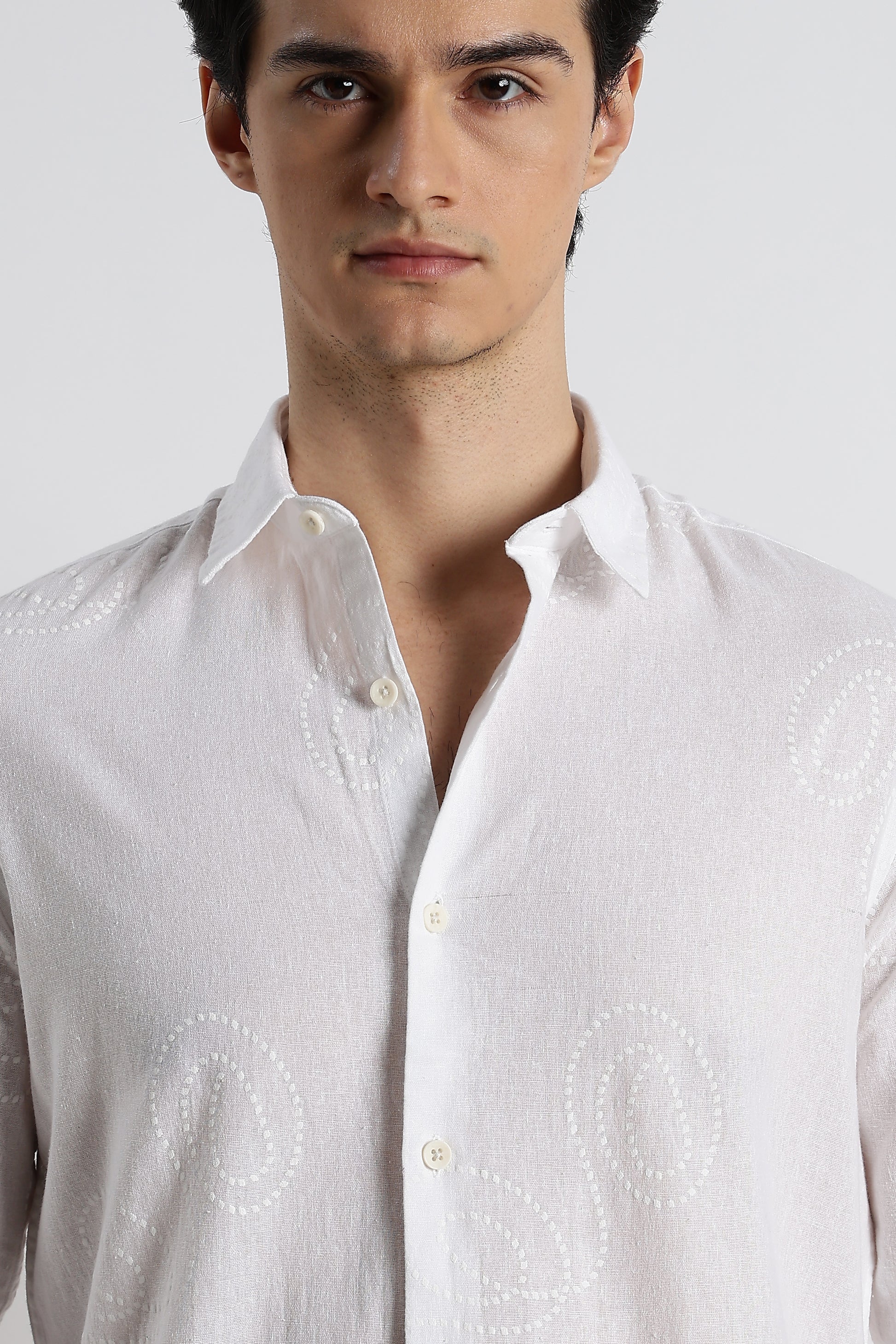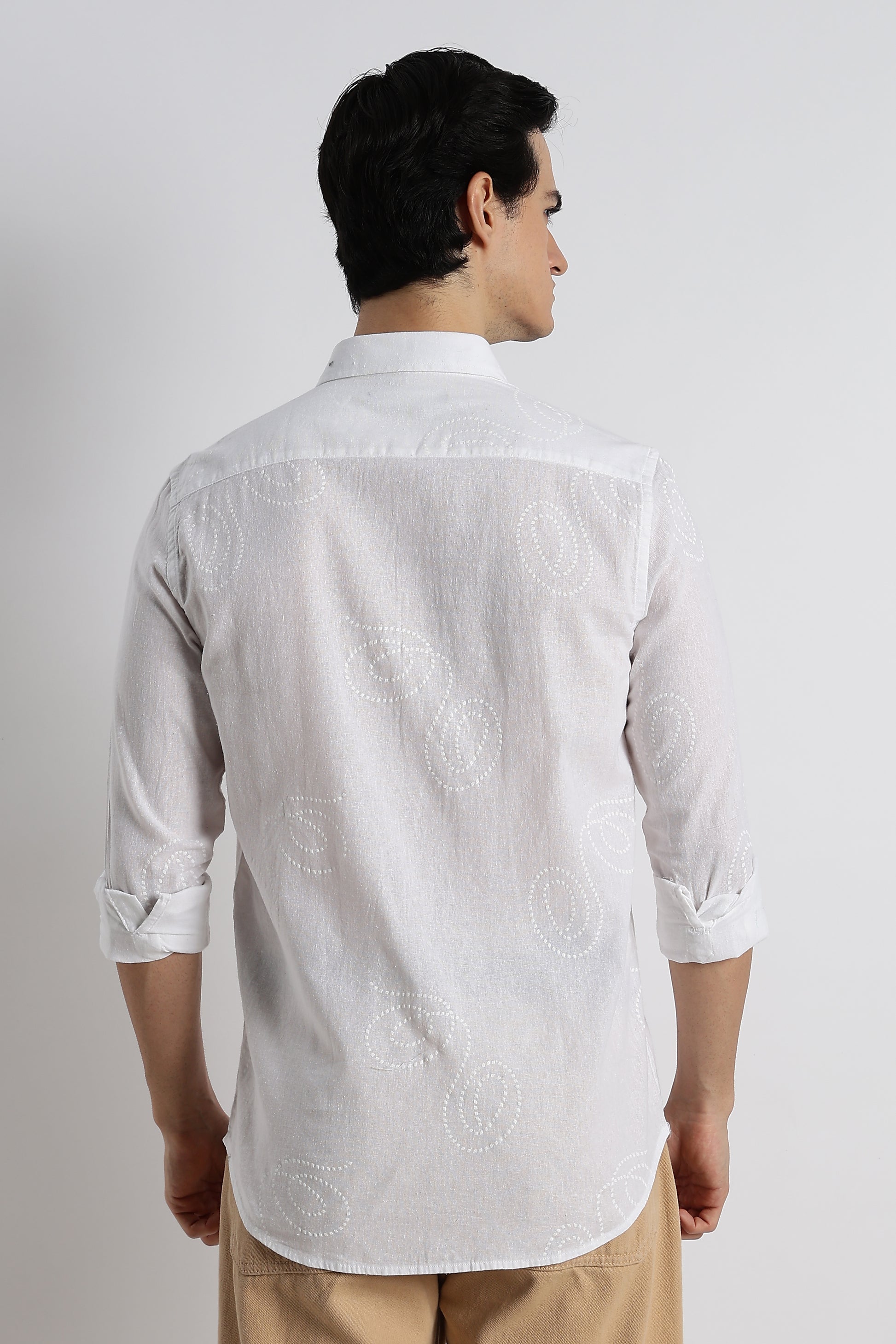 Dotted Swirl Printed Cotton Linen Shirt White