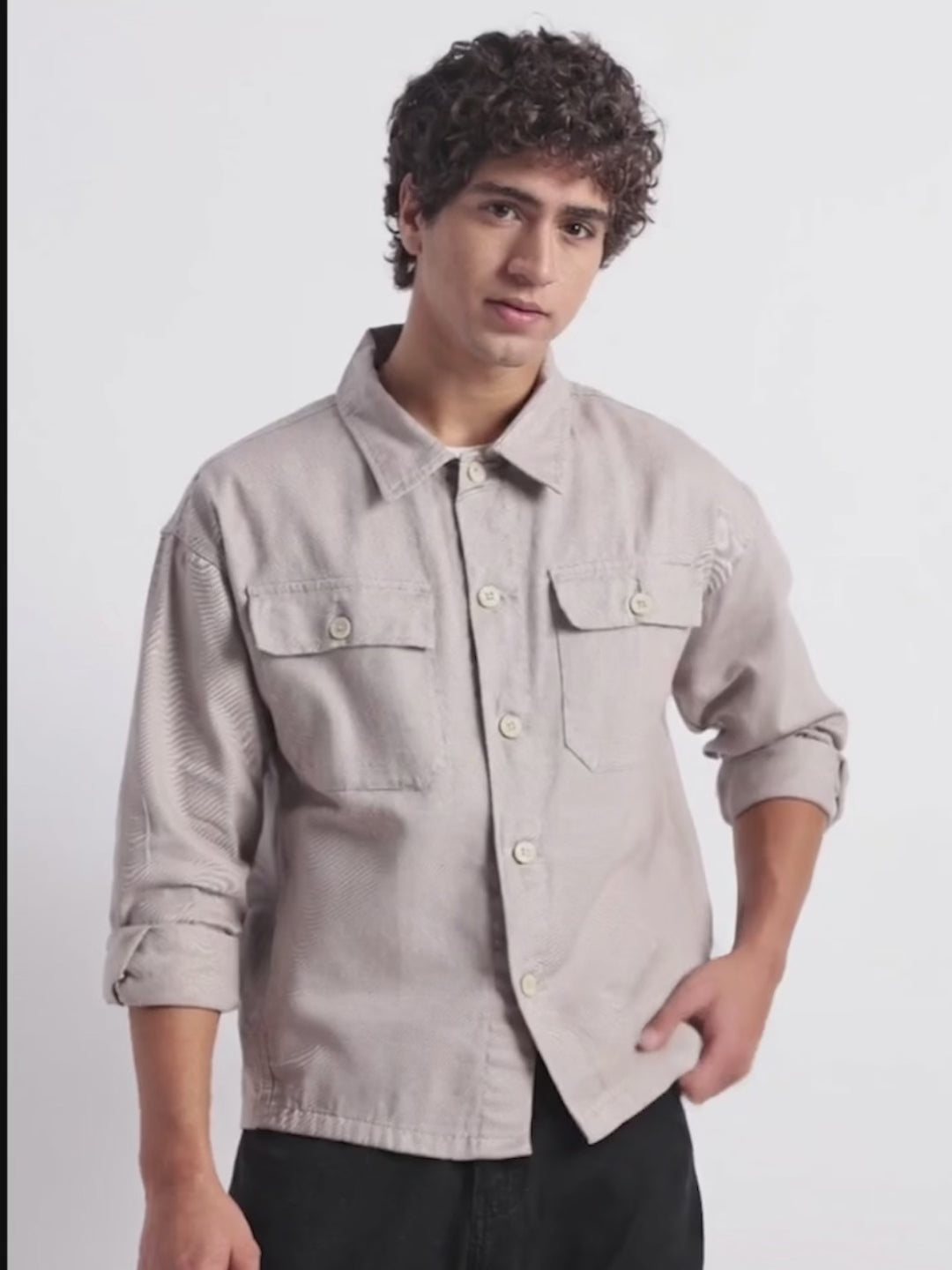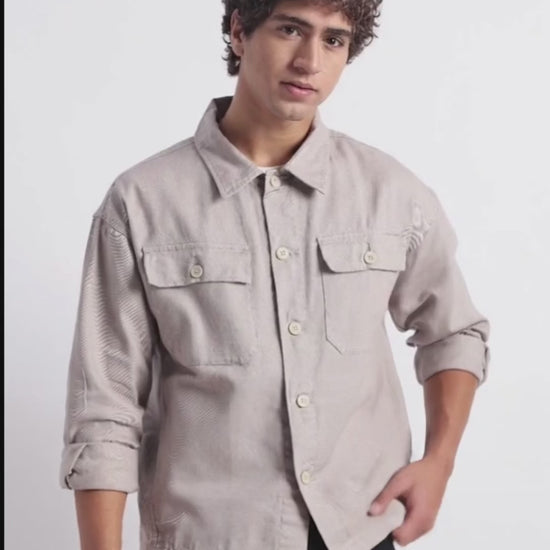 The relaxed fit allows easy movement and comfortable layering over tees or lightweight knits. Two functional chest pockets add a utility touch, making it as practical as it is stylish. Finished with full sleeves and a classic shirt-style collar, this shacket is ideal for casual days, travel, or off-duty styling.