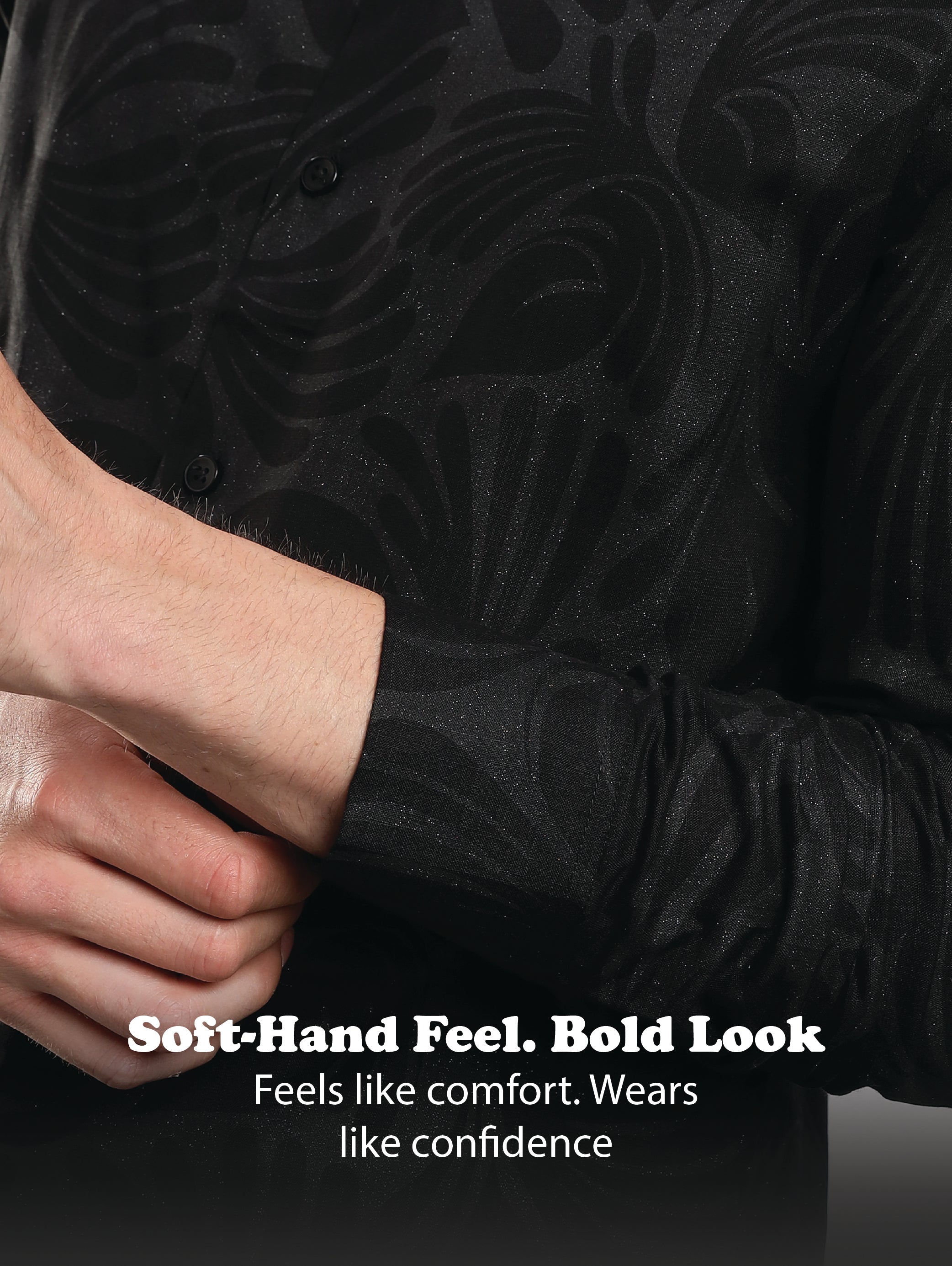 Make a bold style statement with this slim-fit shirt, crafted from 100% premium cotton for comfort and breathability. Designed with subtle glitter prints, it adds a refined festive shimmer without being overpowering. The clean silhouette with full sleeves and a classic collar ensures versatility, letting you move seamlessly from celebrations to evening outings.