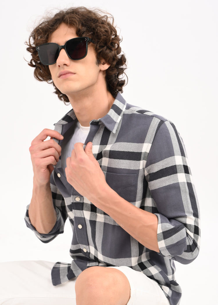 Herringbone Check Shirt Black