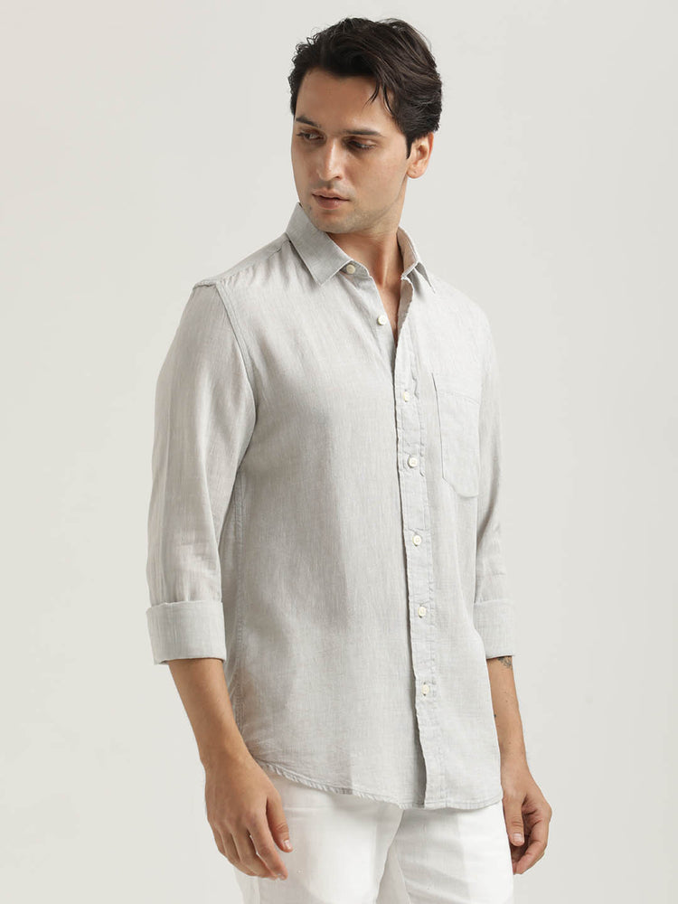 Linen-Cotton Blend Shirt Lt Grey