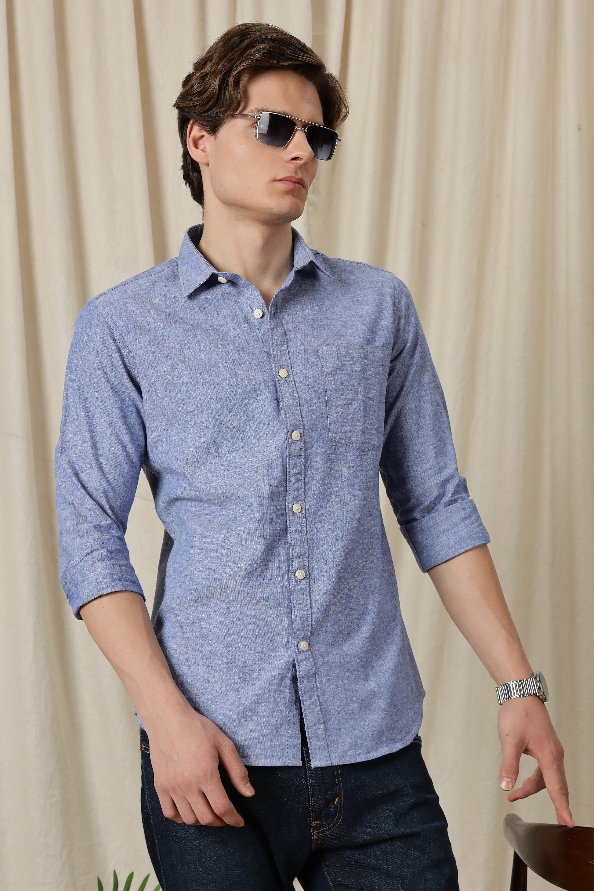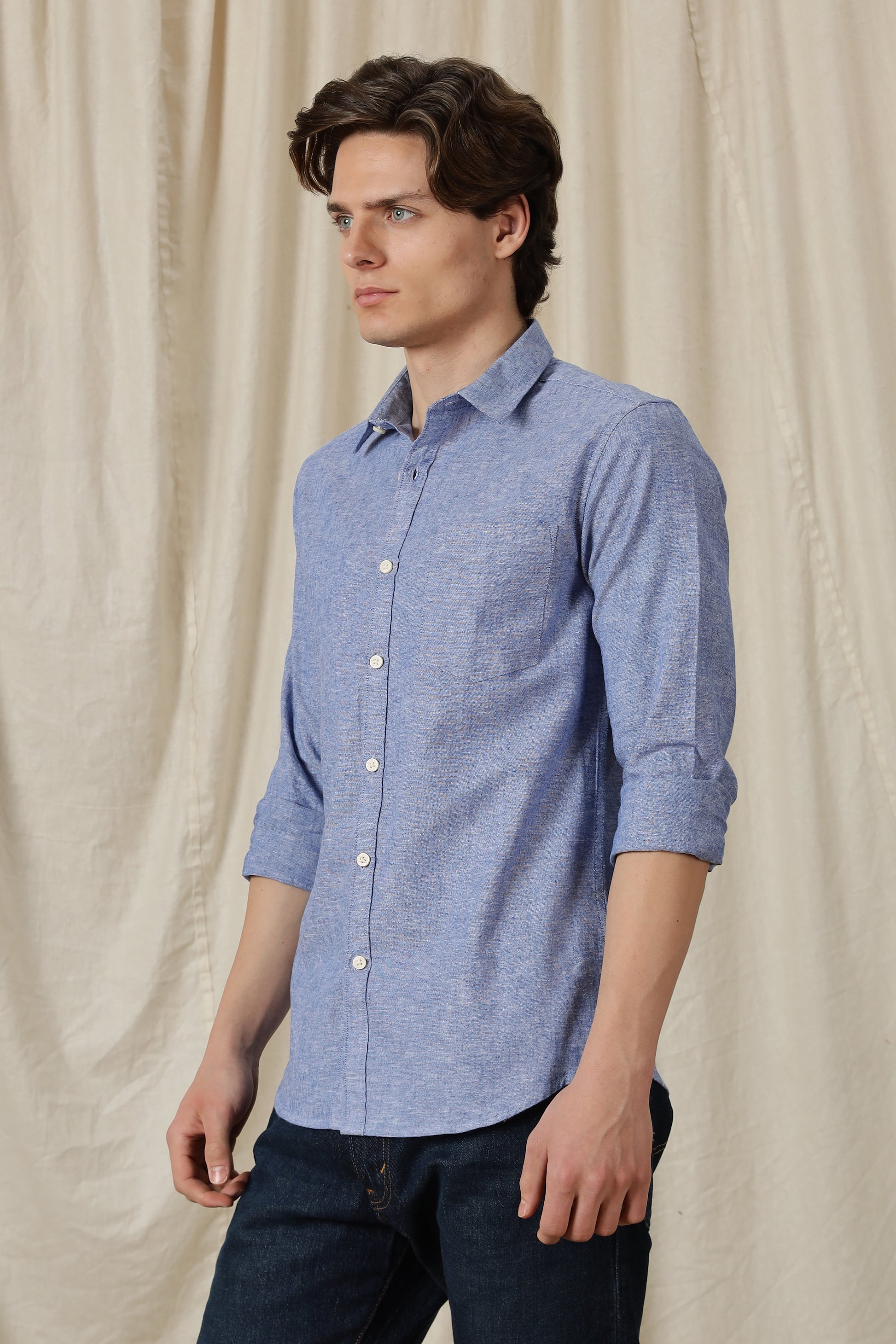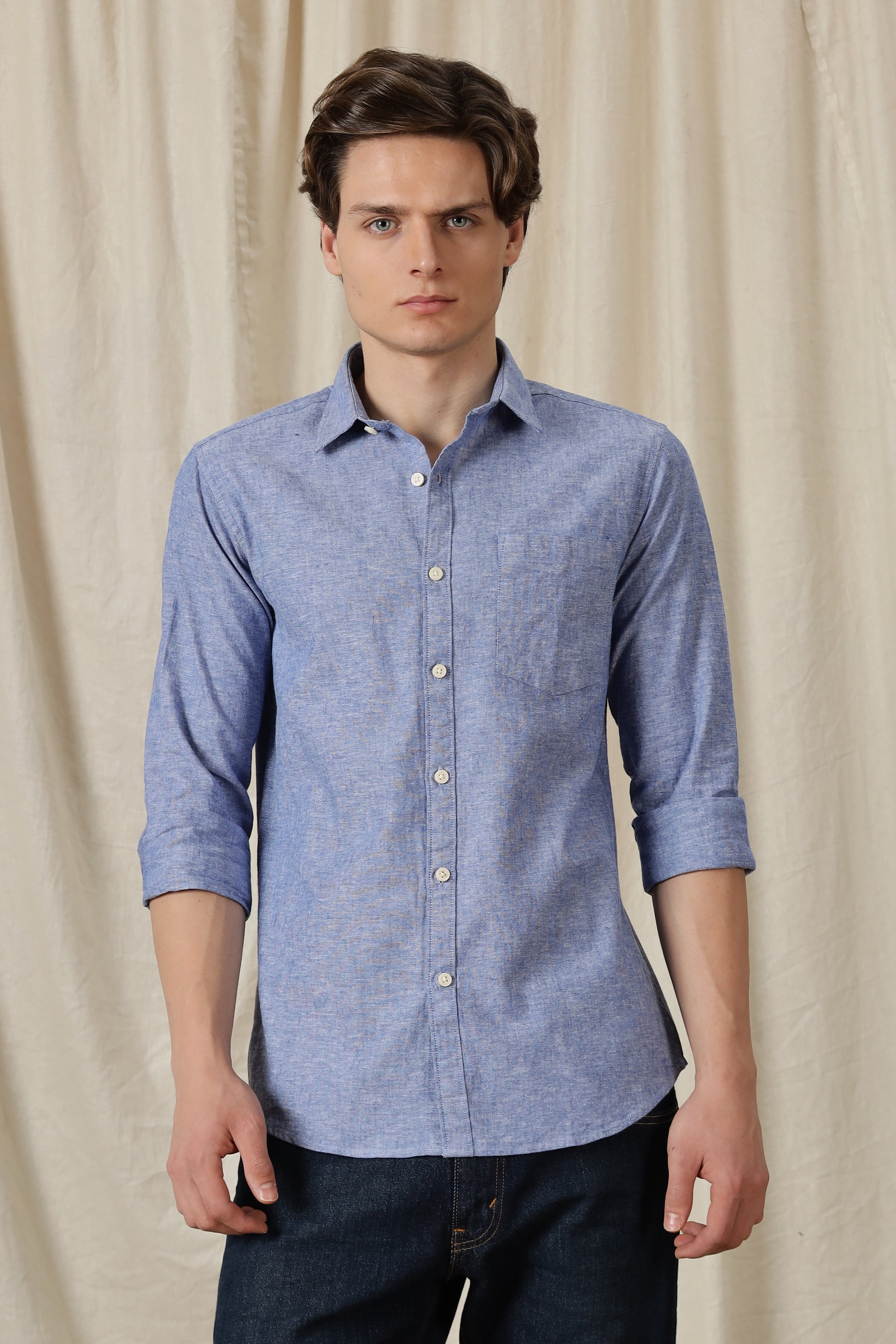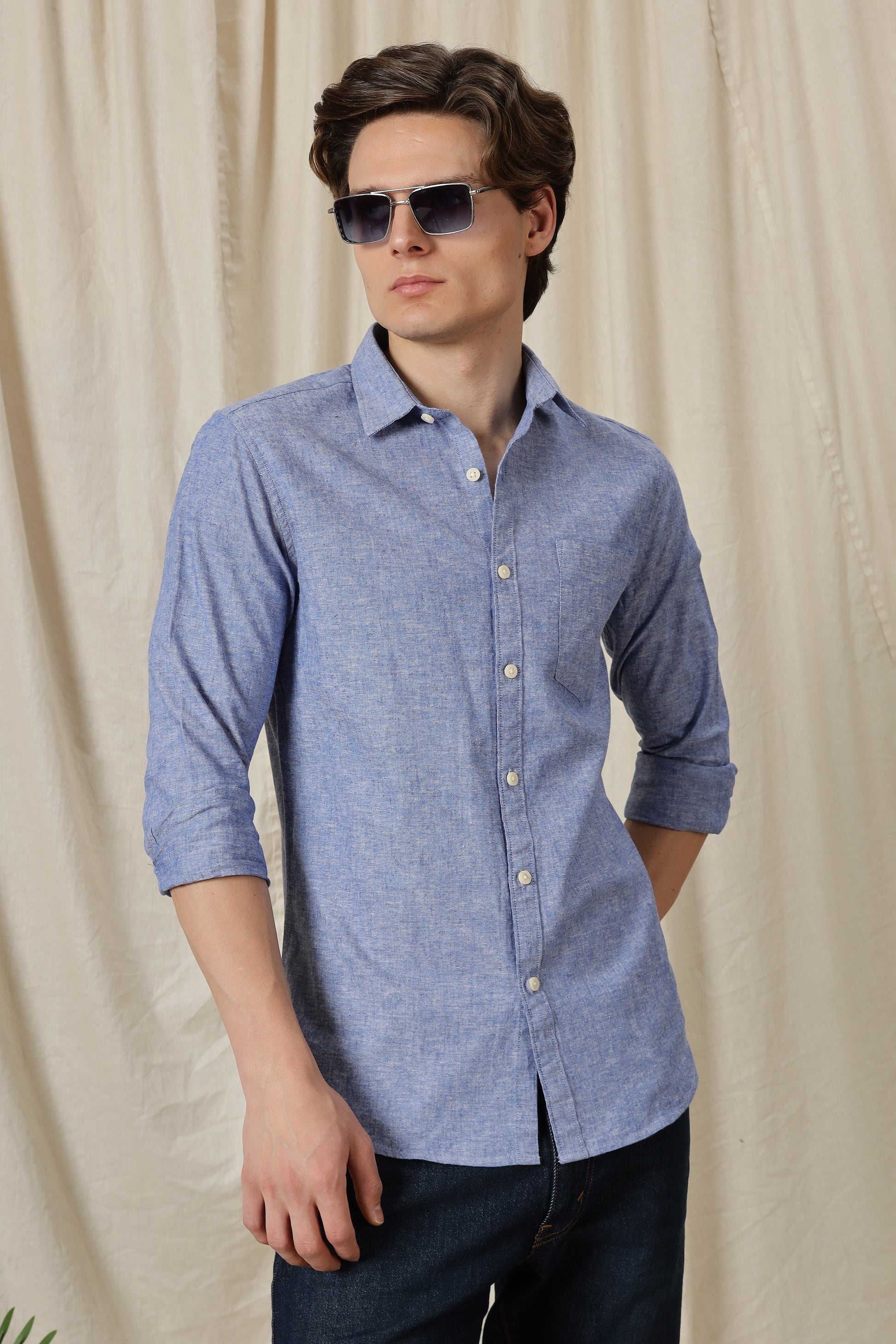 Designed for everyday versatility with a refined finish, this solid casual shirt is crafted from a premium cotton-linen blend that offers natural breathability and a soft, lightweight feel. The fabric keeps you comfortable through long hours while maintaining a crisp, structured look.