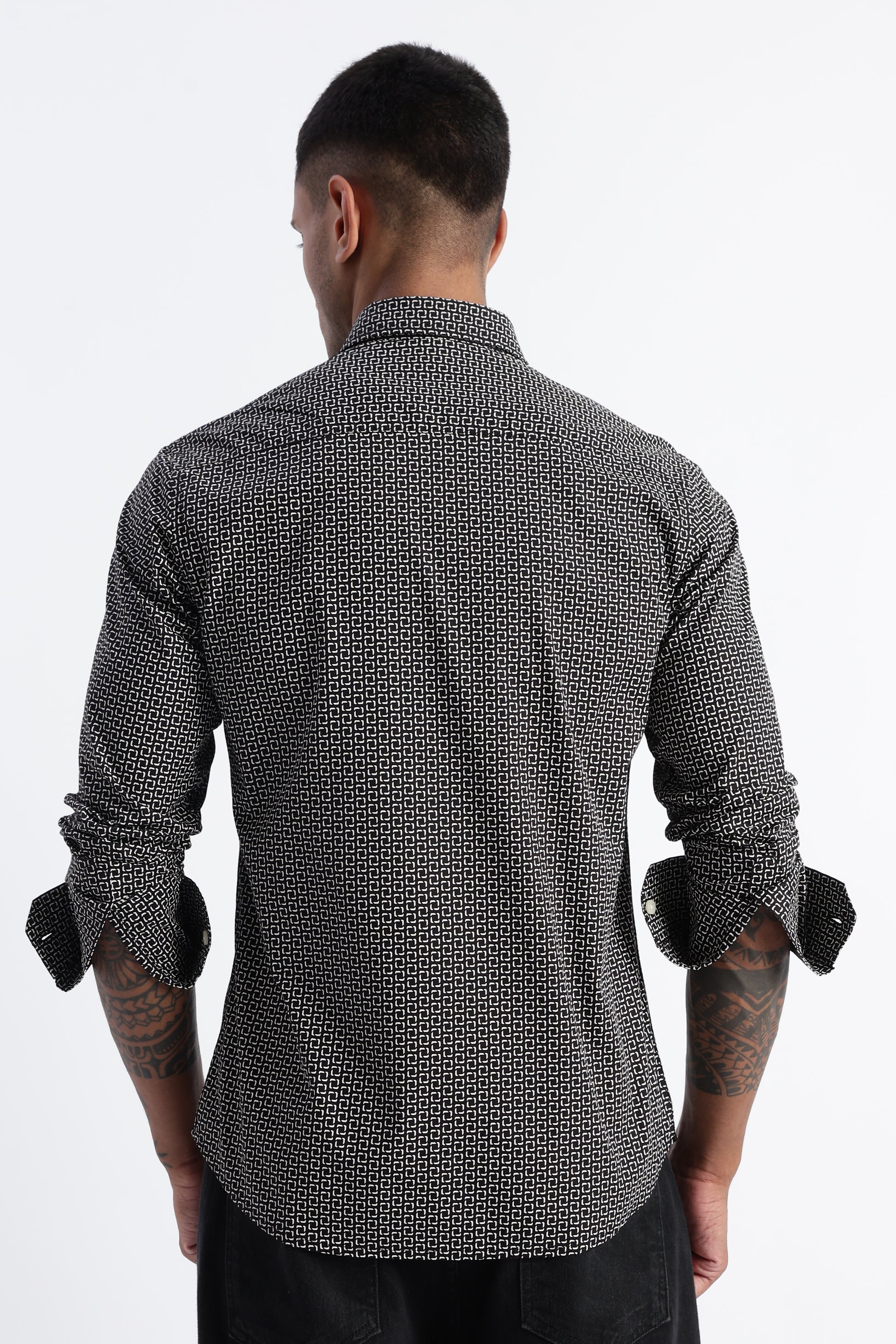 Step into easy, everyday style with this Black printed shirt crafted from soft, breathable cotton. Designed in a modern slim silhouette, it keeps you looking sharp while staying effortlessly comfortable. The micro-print pattern adds subtle character without overpowering your look, making it a perfect pick for work, weekends, and everything in between.