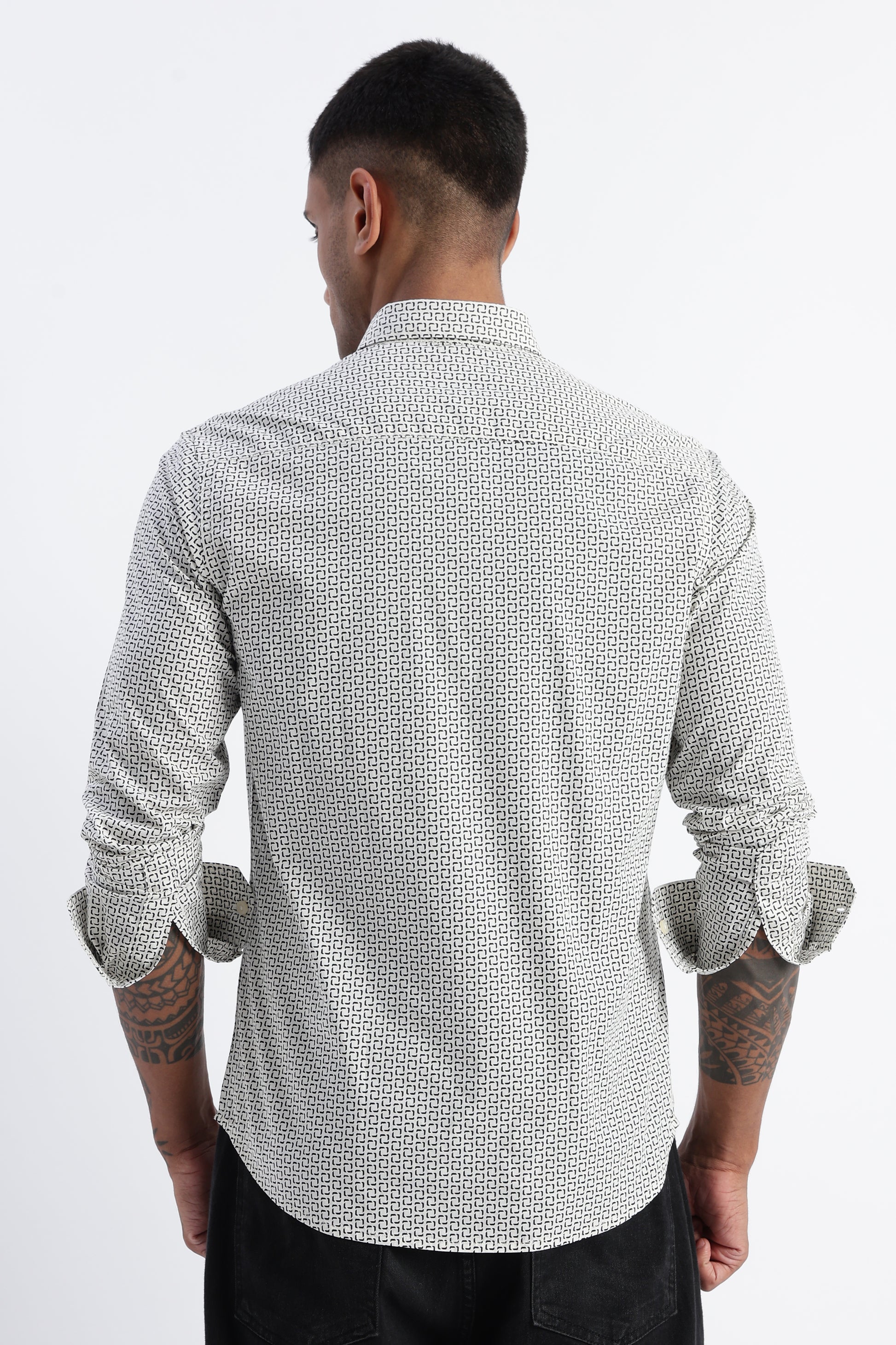 Step into easy, everyday style with this Off White printed shirt crafted from soft, breathable cotton. Designed in a modern slim silhouette, it keeps you looking sharp while staying effortlessly comfortable. The micro-print pattern adds subtle character without overpowering your look, making it a perfect pick for work, weekends, and everything in between.