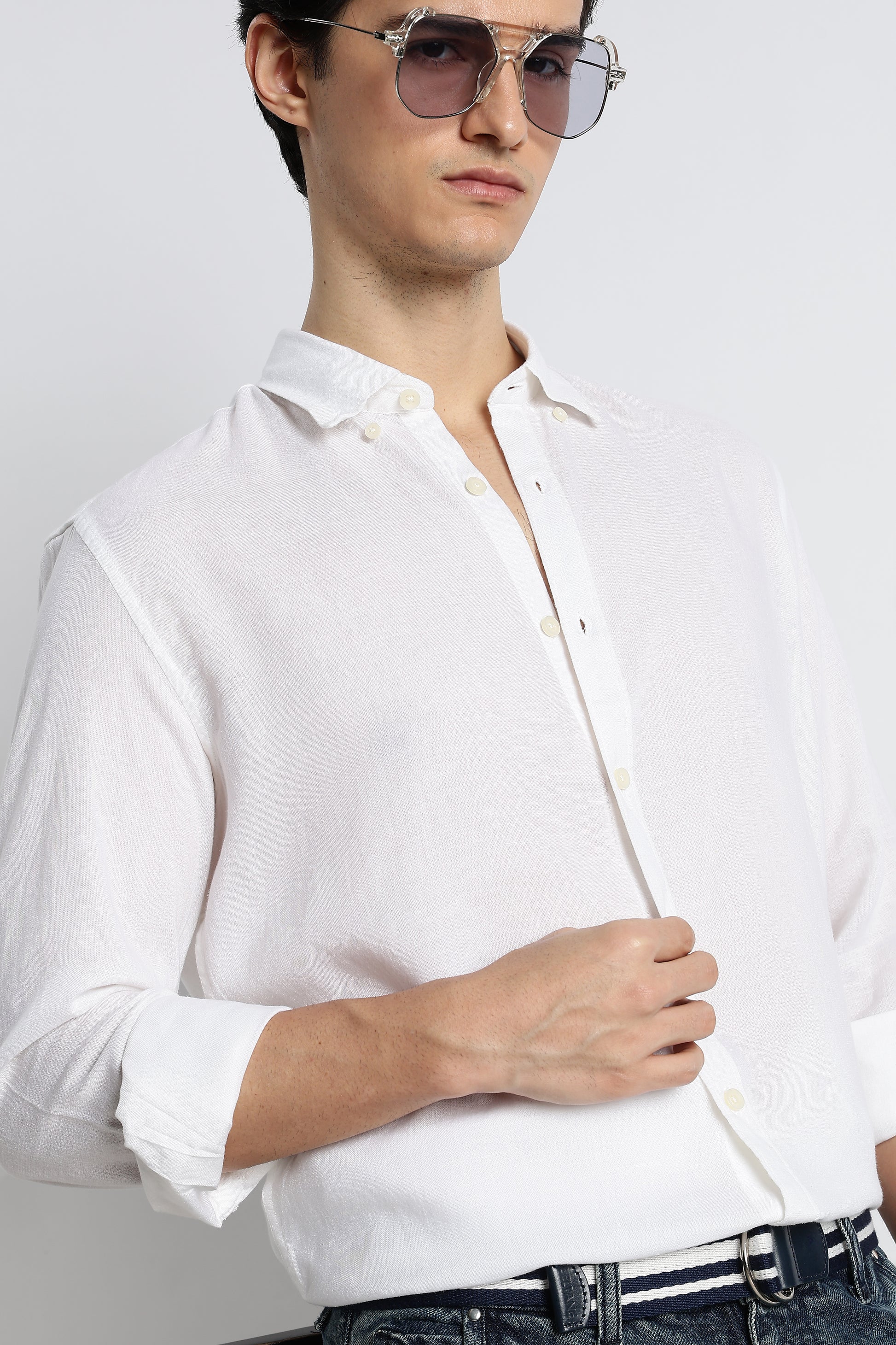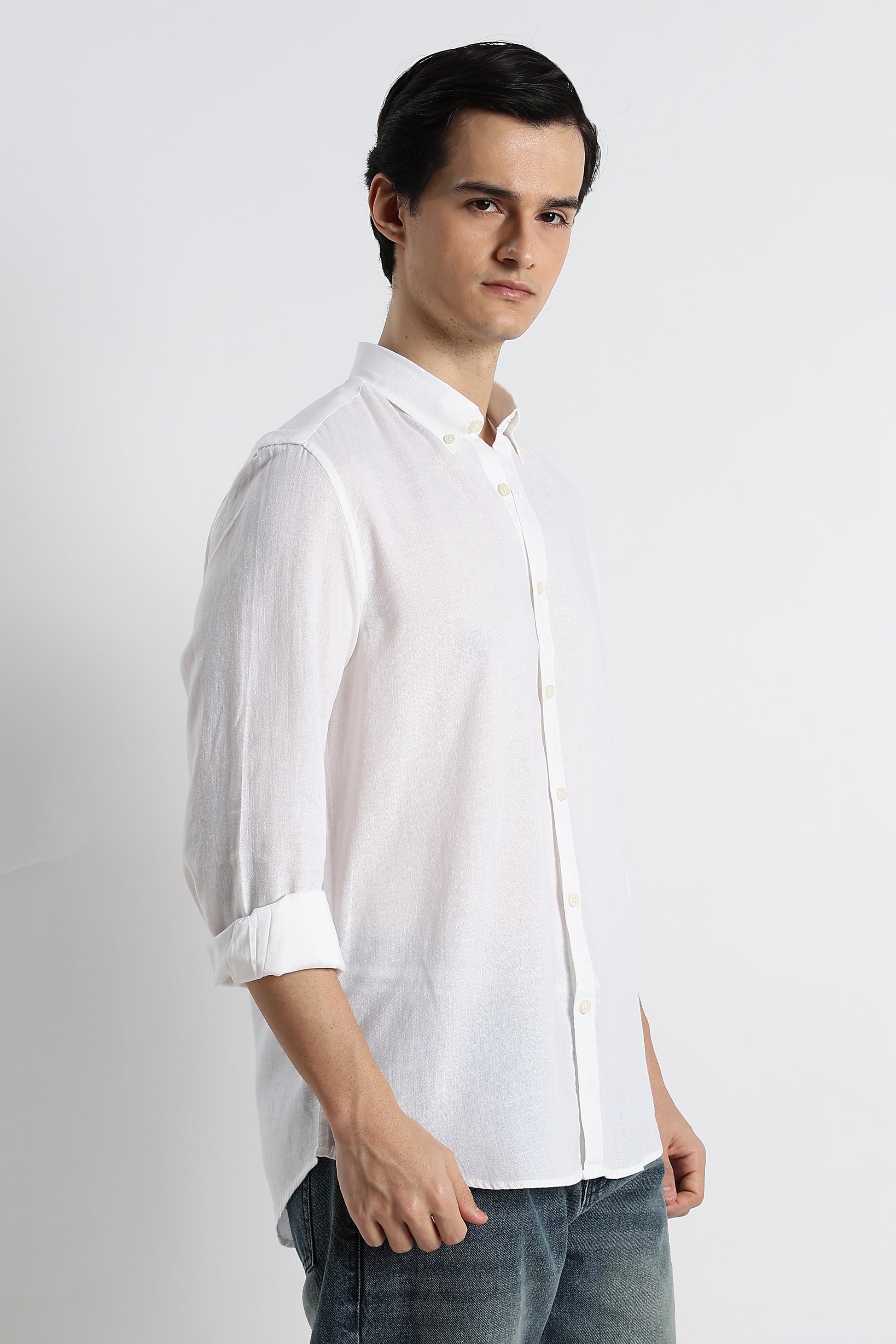 This White cotton-linen shirt is designed for the man who appreciates effortless style. The fabric brings together the breathability of cotton with the natural texture of linen—creating a lightweight, easy drape that feels just right through the day.