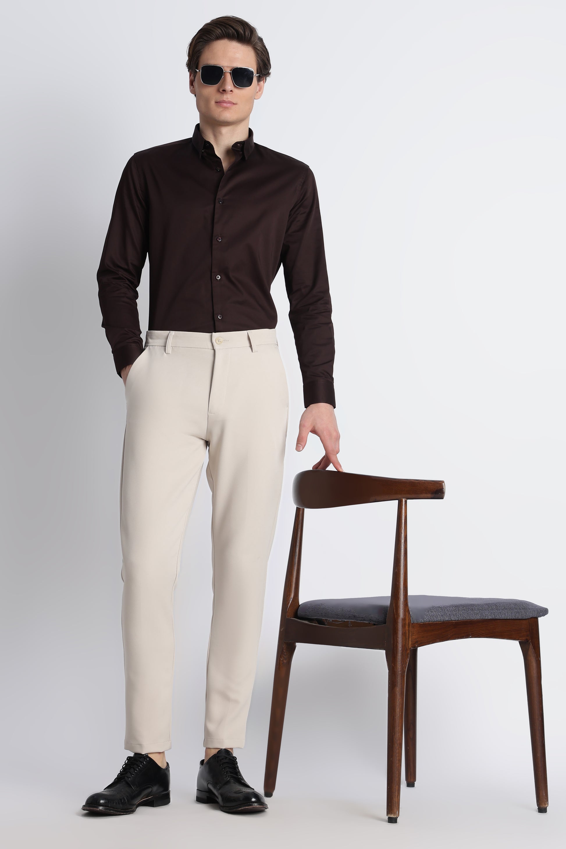 Designed with a modern slim silhouette, these trousers feature a clean front that keeps the profile sharp and versatile. Four functional pockets add practicality without disrupting the minimal aesthetic, making them suitable for both relaxed and semi-polished casual settings.