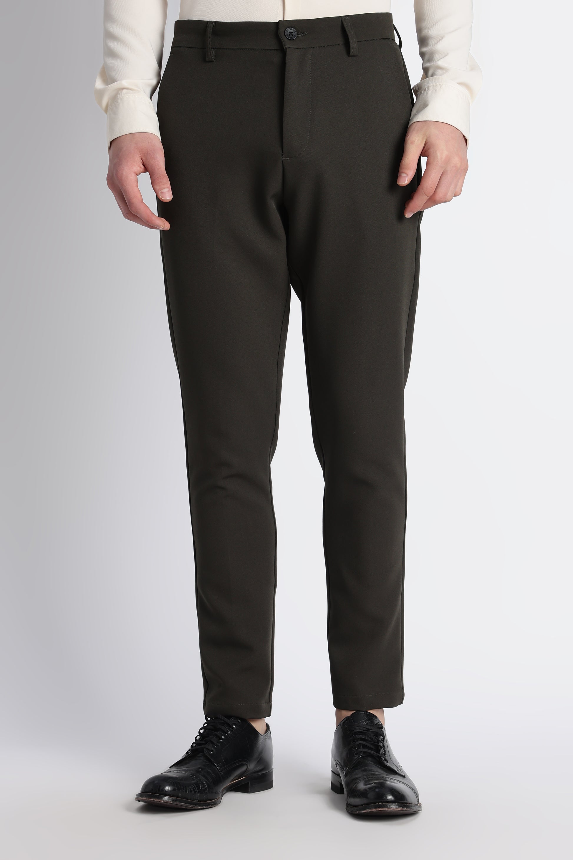 Designed with a modern slim silhouette, these trousers feature a clean front that keeps the profile sharp and versatile. Four functional pockets add practicality without disrupting the minimal aesthetic, making them suitable for both relaxed and semi-polished casual settings.