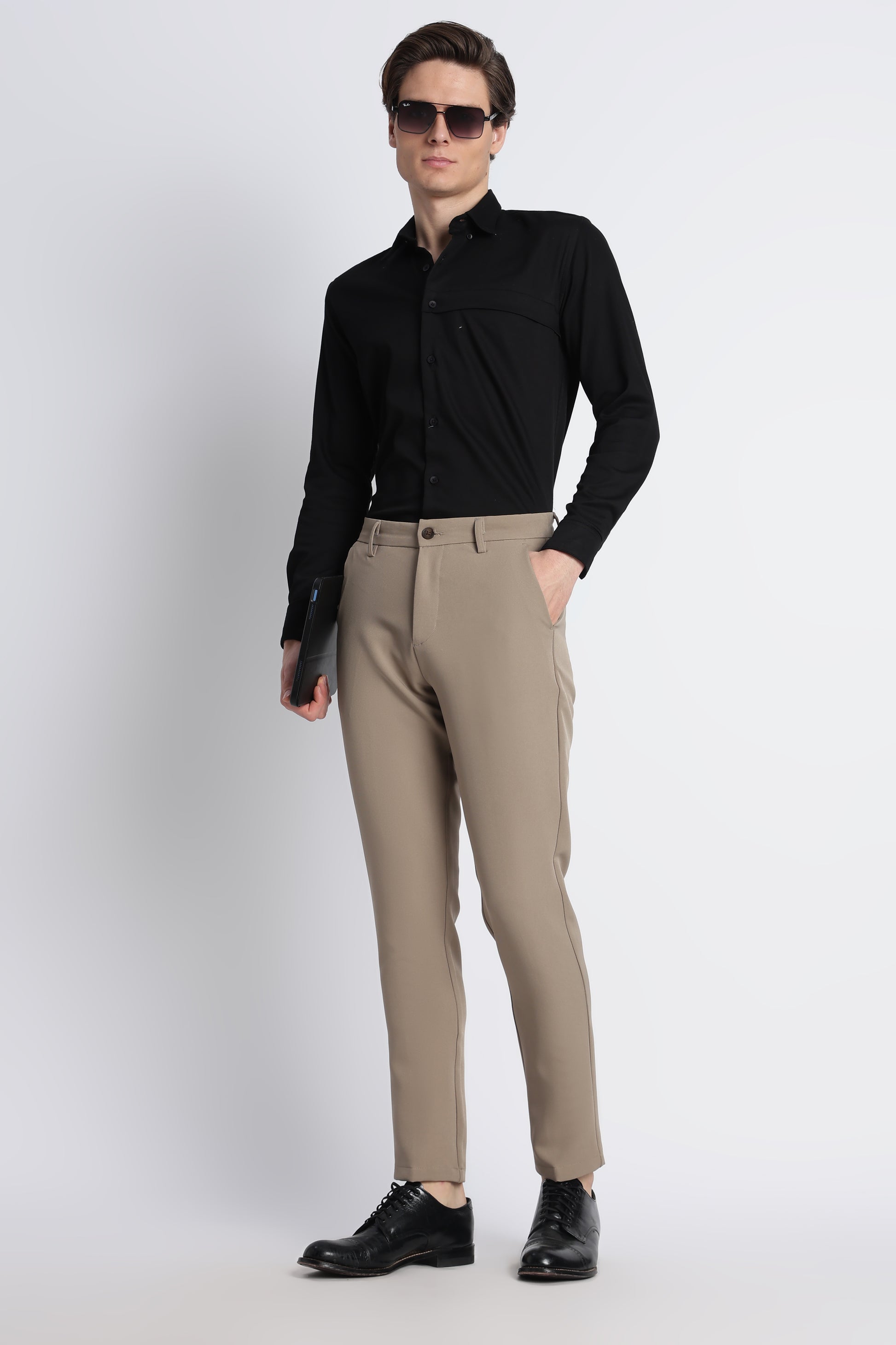 Designed with a modern slim silhouette, these trousers feature a clean front that keeps the profile sharp and versatile. Four functional pockets add practicality without disrupting the minimal aesthetic, making them suitable for both relaxed and semi-polished casual settings.