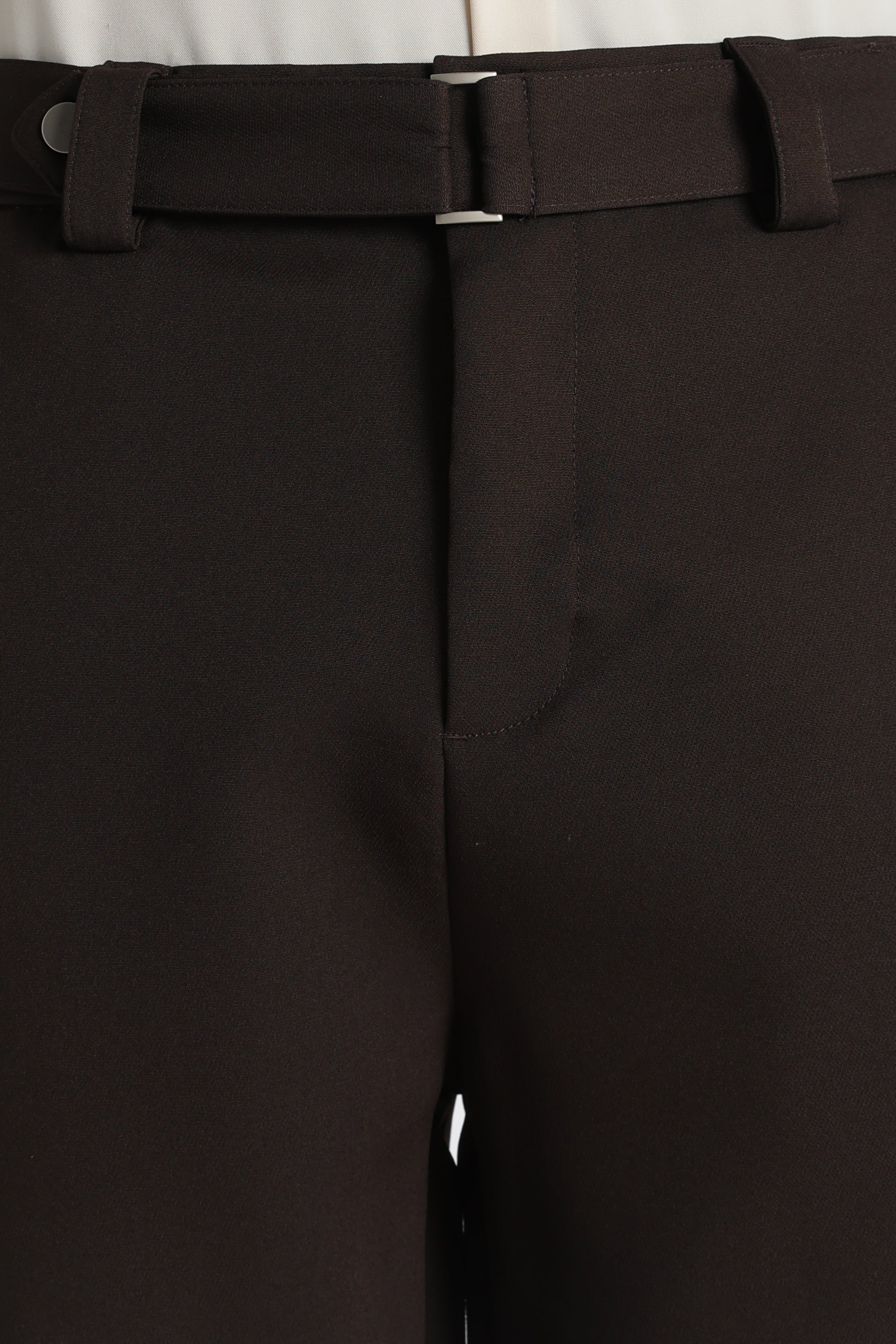 Modern Casual Trousers with Belt Detail Dk Brown
