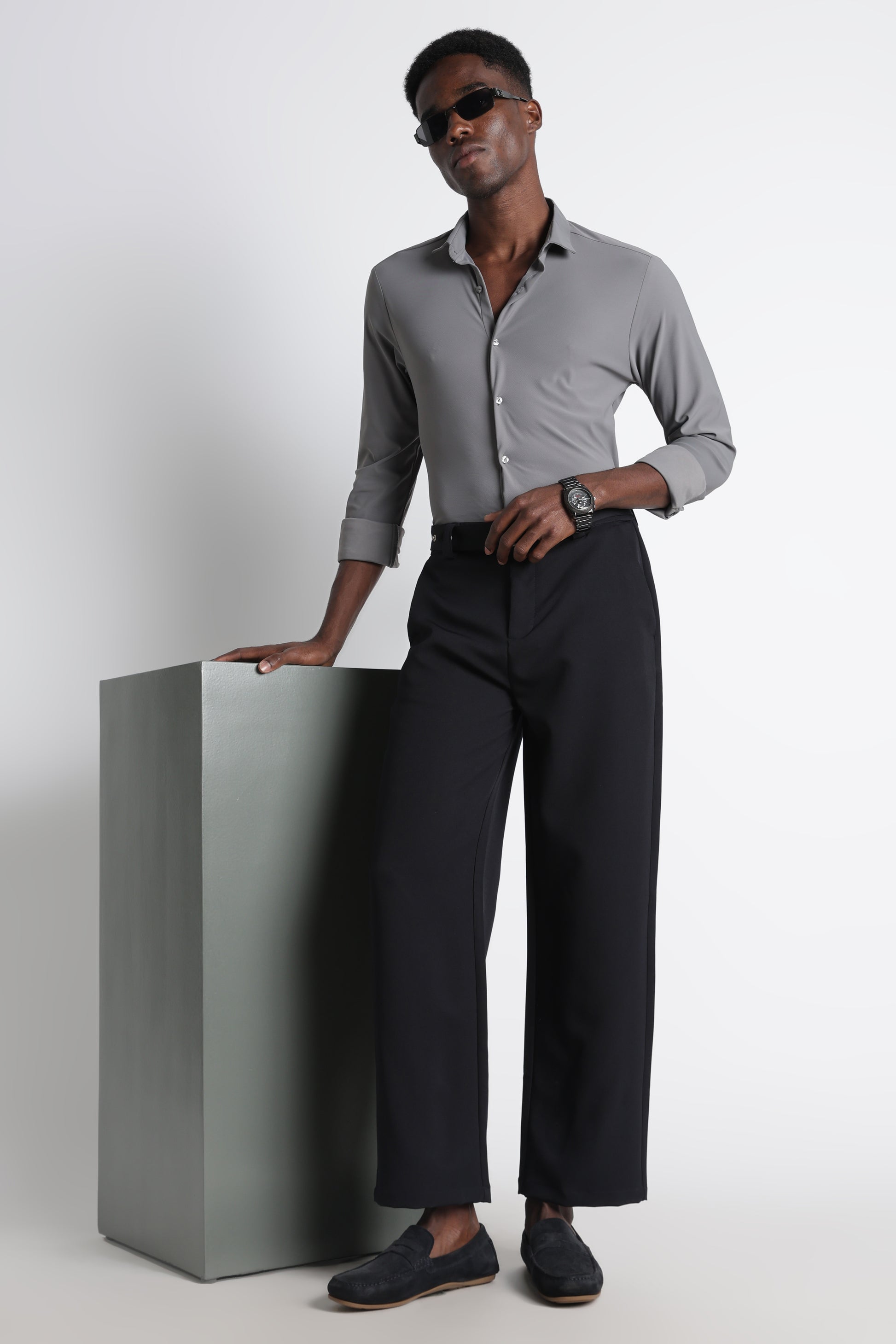 The loose-fit silhouette allows unrestricted movement, making these trousers ideal for all-day wear. Thoughtfully designed with four functional pockets, they balance practicality with a clean, modern aesthetic. The built-in belt detail adds both convenience and a refined touch, eliminating the need for extra layering.