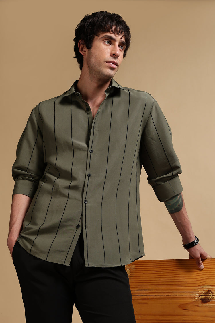 Nylon Slim Fit Striped Shirt Green