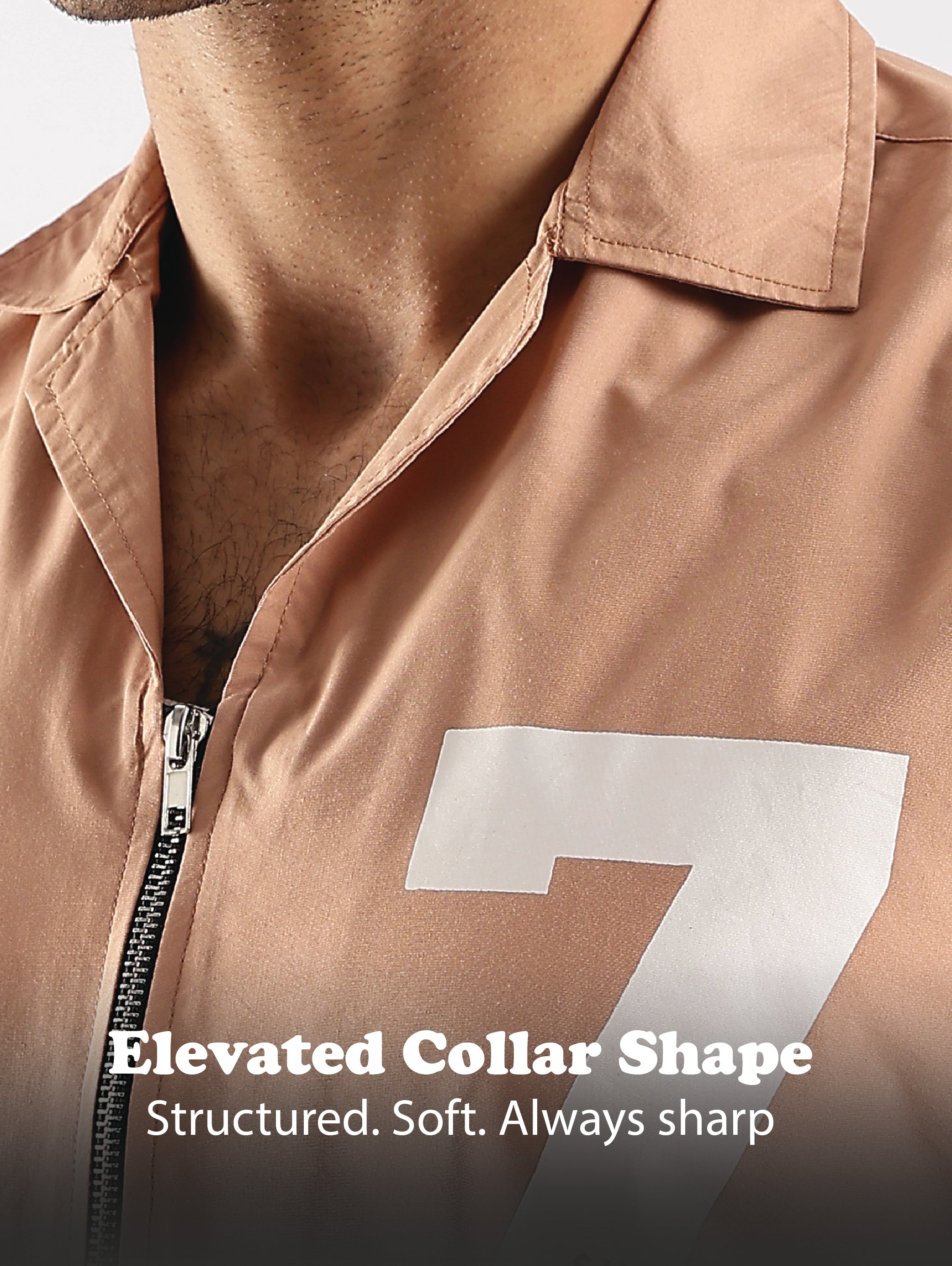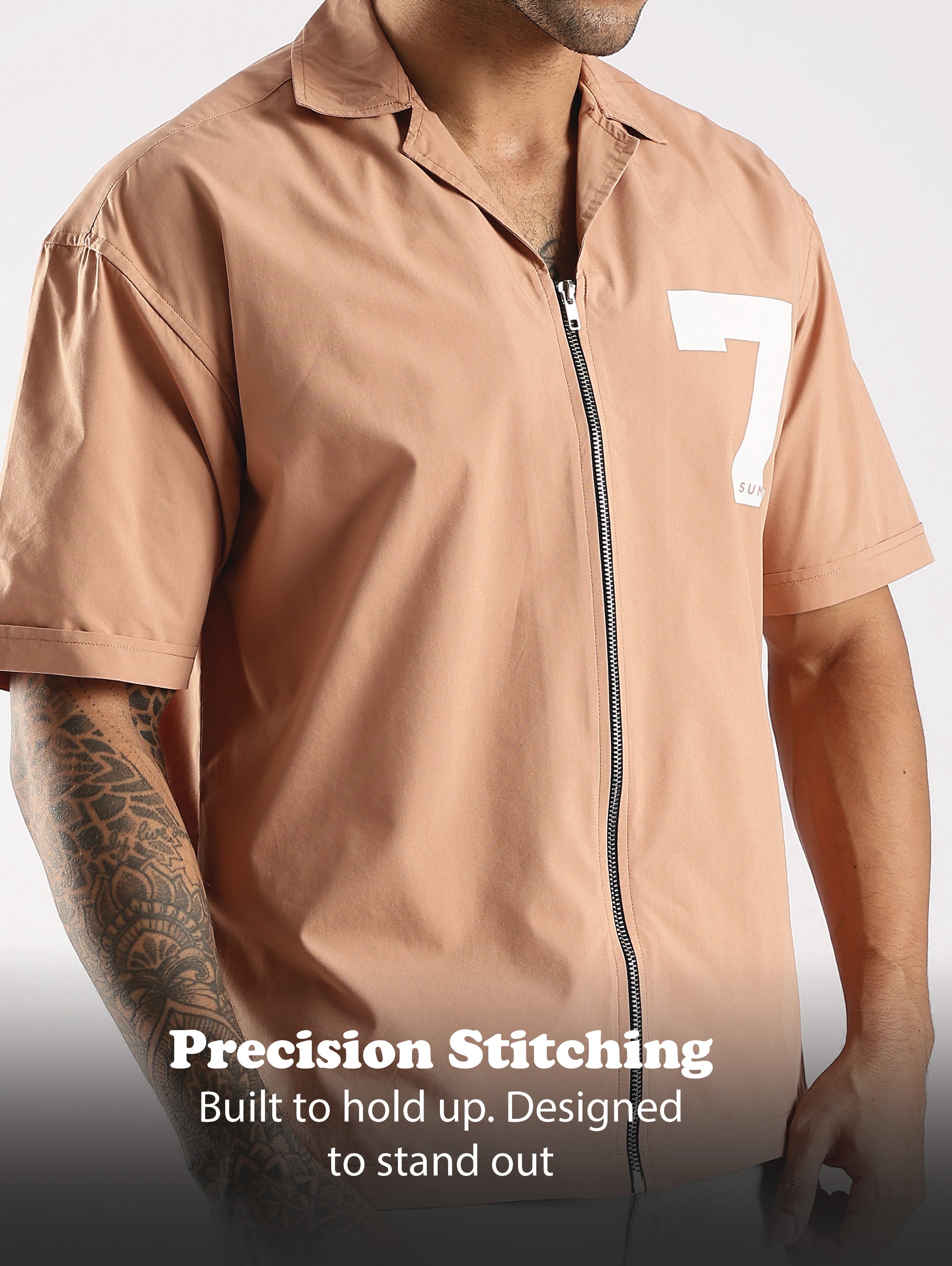 Poly Cotton Slim Fit Zip-Up Shirt Peach
