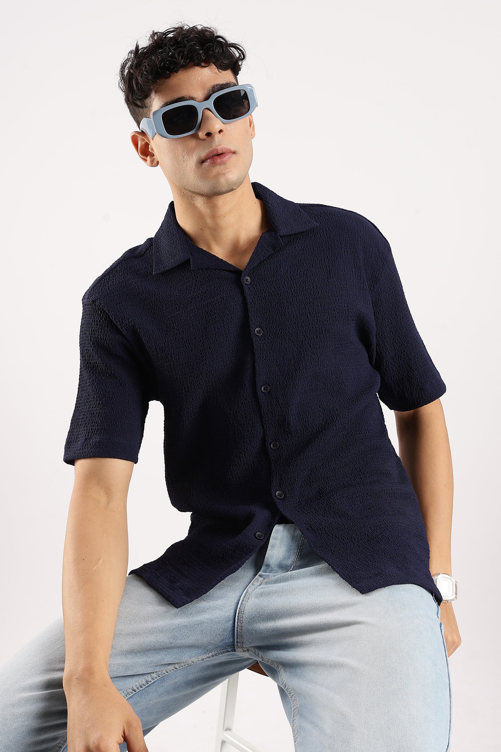 Key Designs : Half Sleeve, Textured Effect, No Pocket, Cuban collar