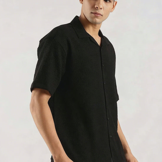 Poly Textured Oversized Shirt Black