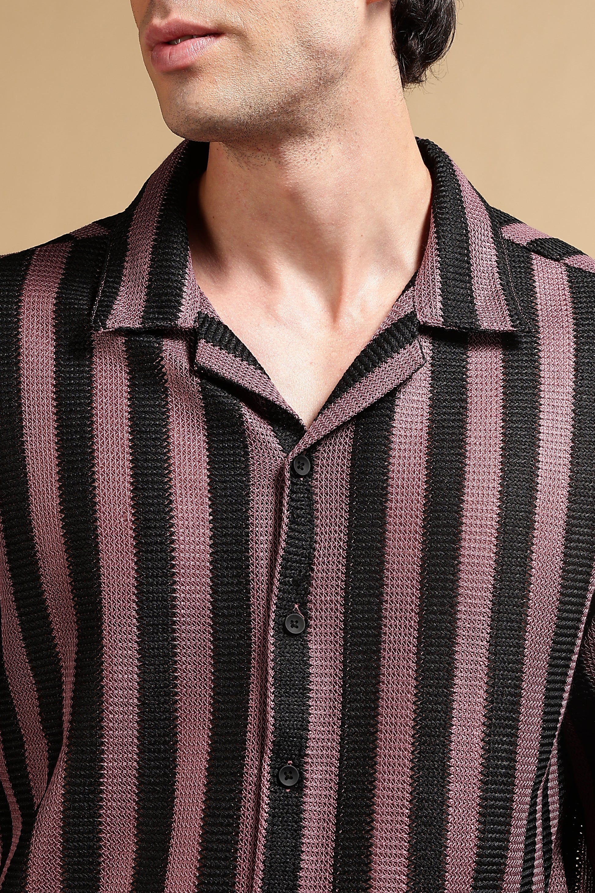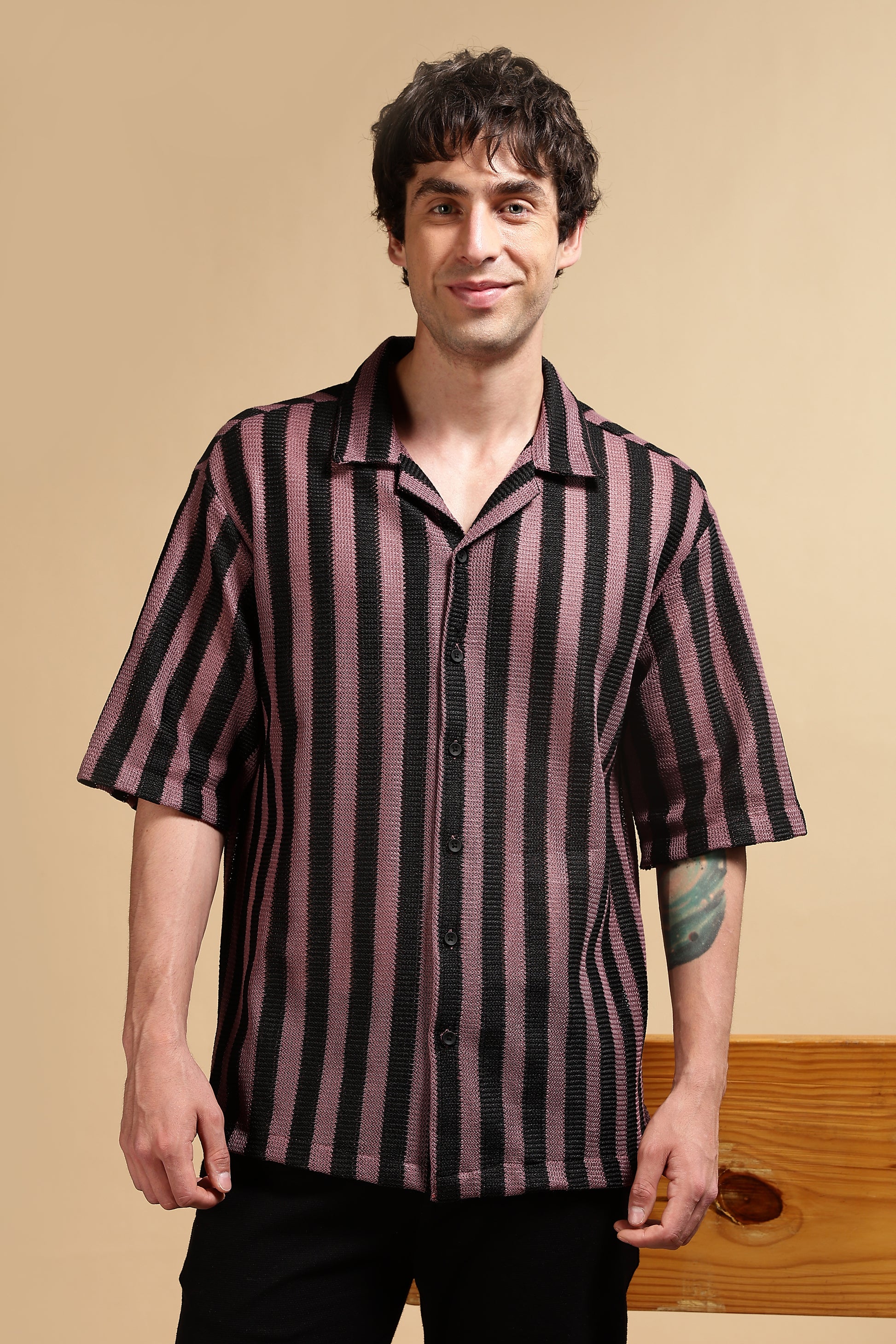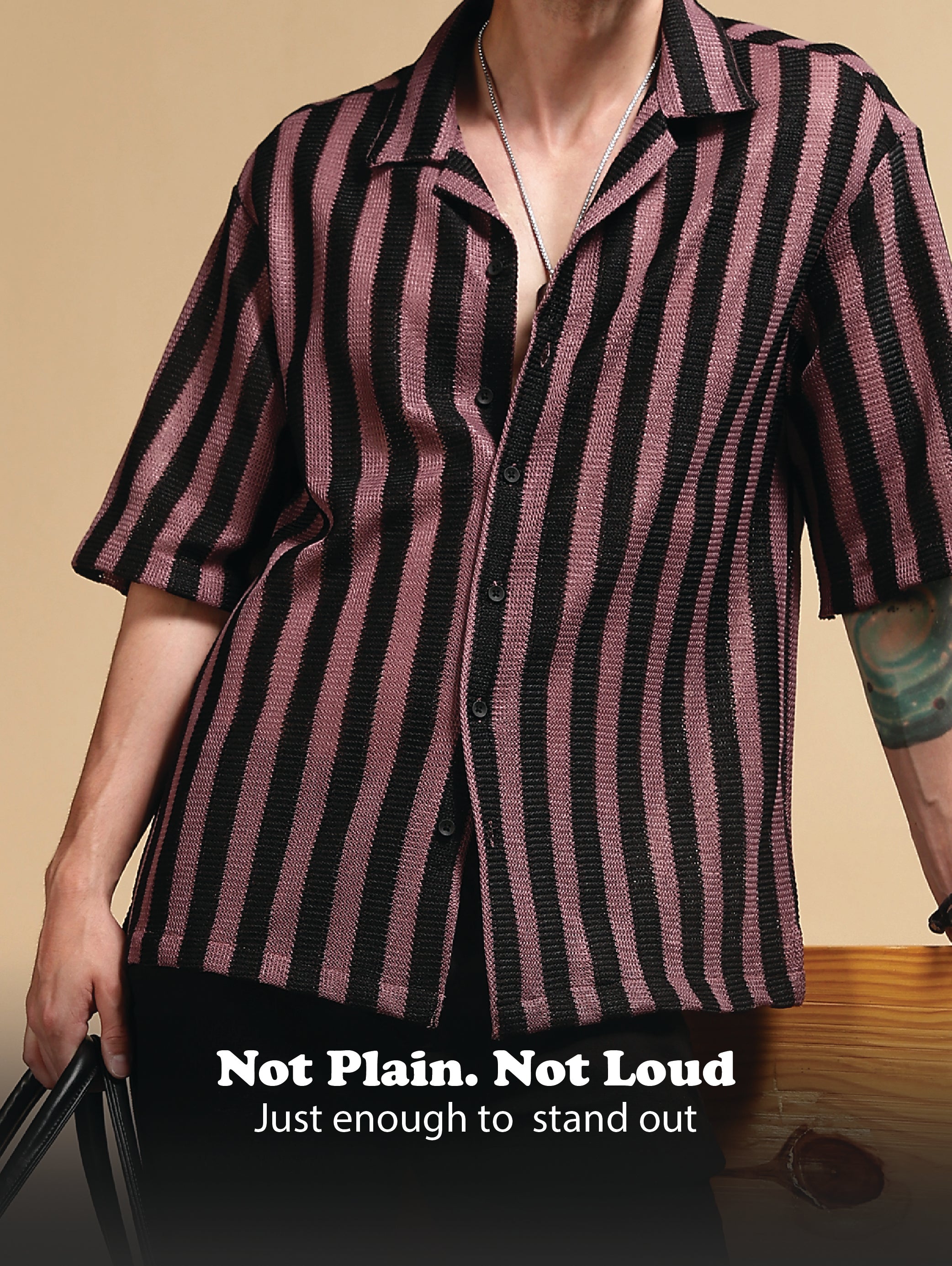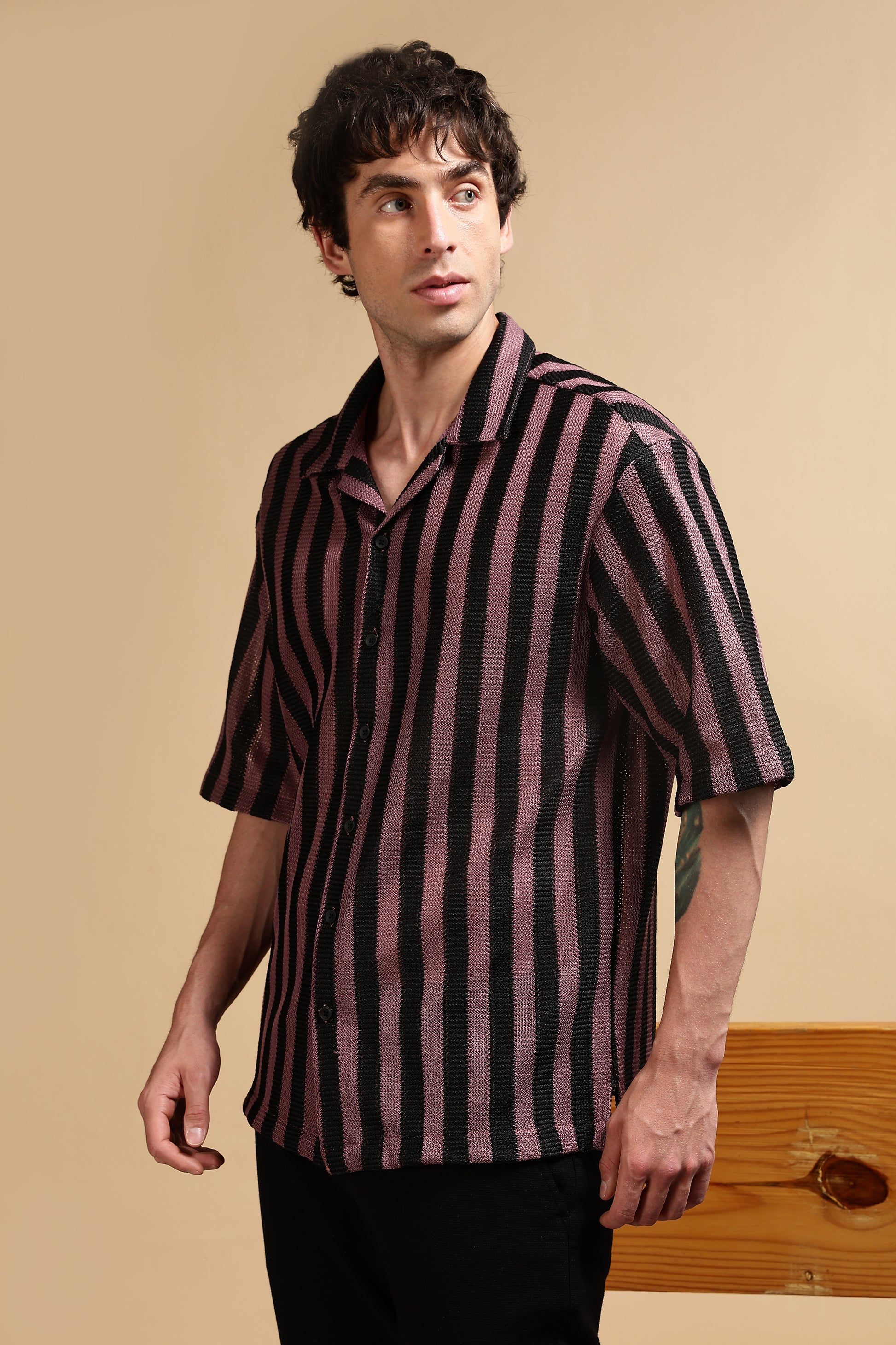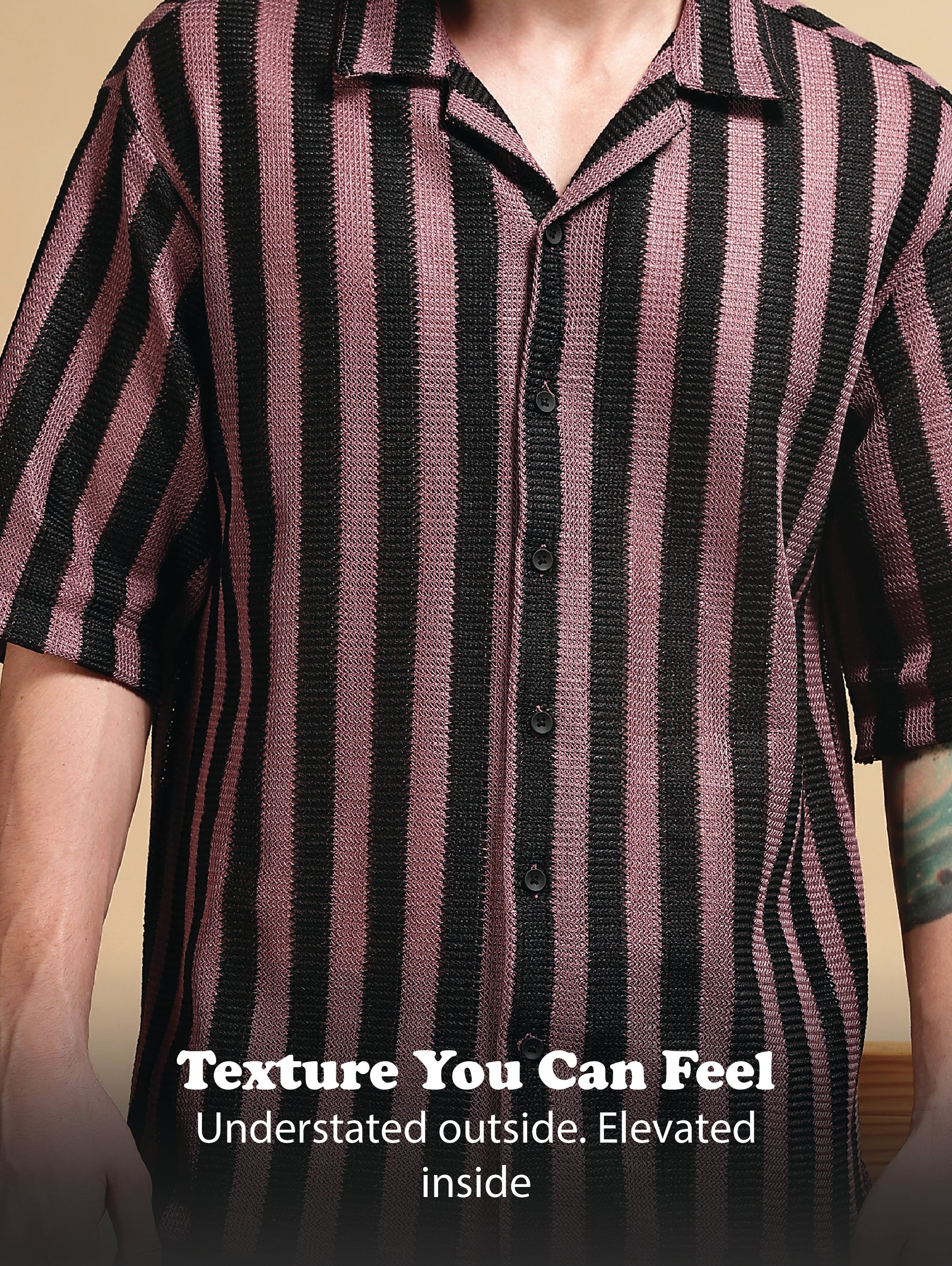 Bring an easygoing edge to your wardrobe with this relaxed-fit striped shirt, crafted in premium polyester Croatia fabric for lightweight comfort and breathability. Designed with bold vertical stripes, this shirt balances retro charm with modern casual styling.