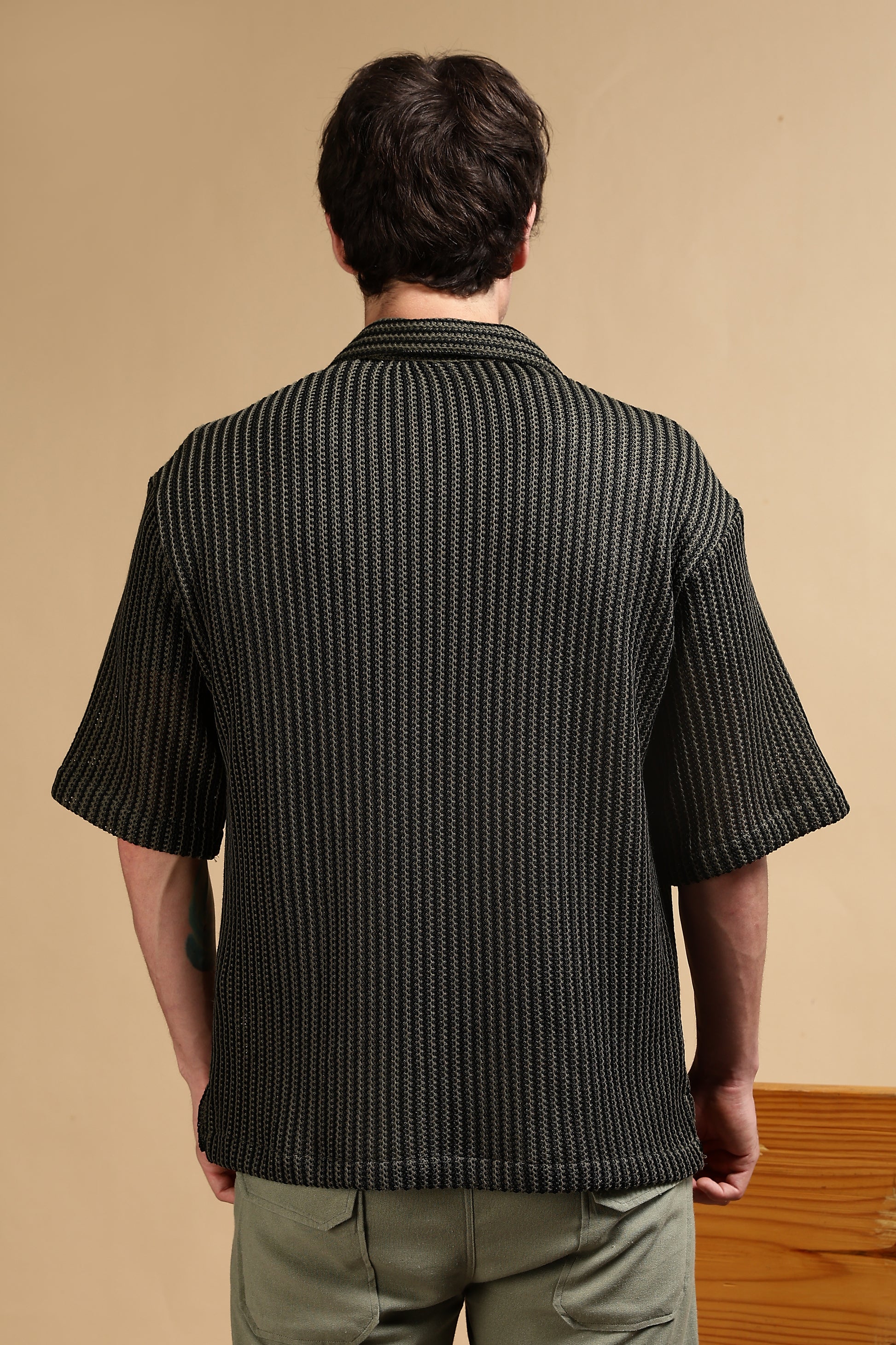 Polyester Relaxed Fit Self-Designed Shirt Green
