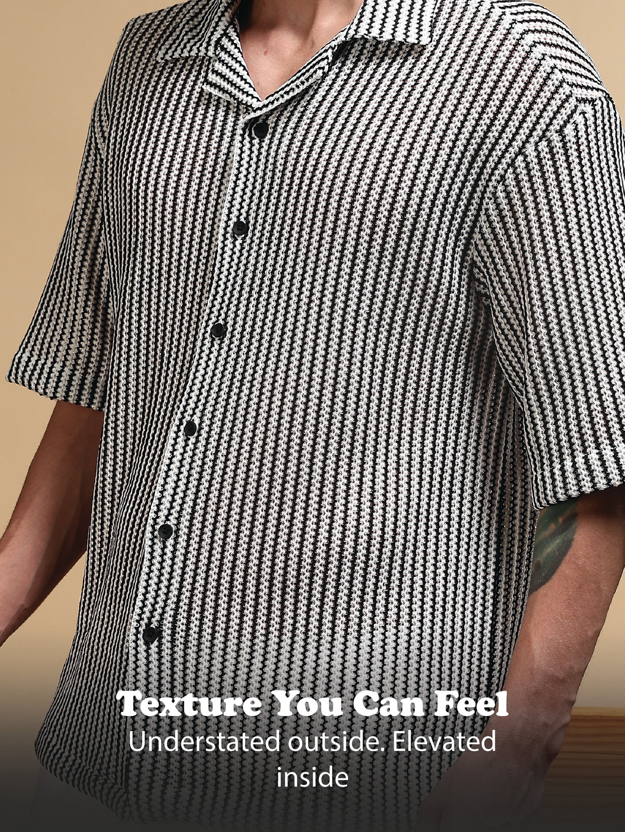 Refresh your wardrobe with this relaxed-fit shirt, crafted in soft polyester for lightweight comfort and breathability. Featuring a unique self-designed textured weave, it blends minimalism with modern detail. The half sleeves and button-down front make it an easy, versatile choice for casual outings.